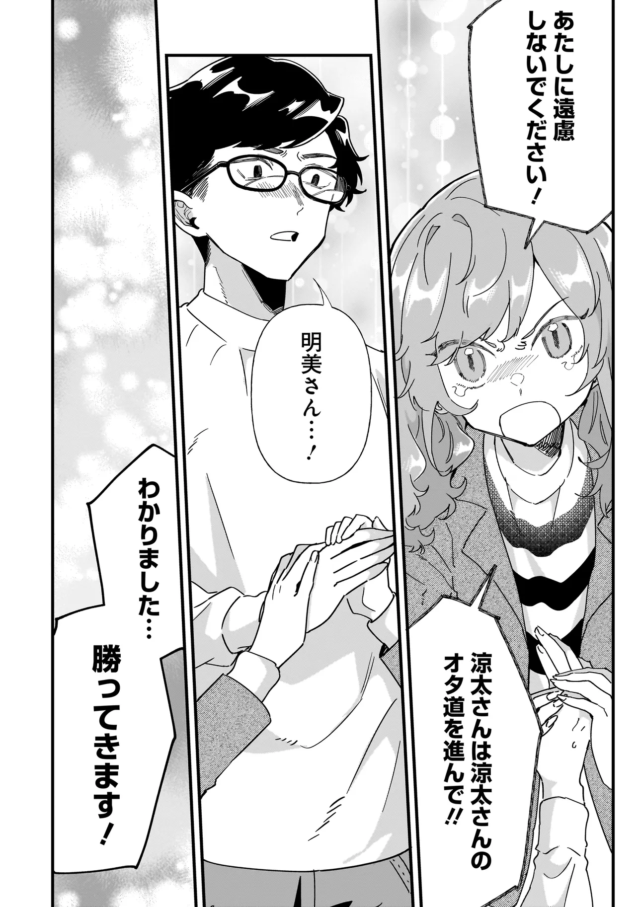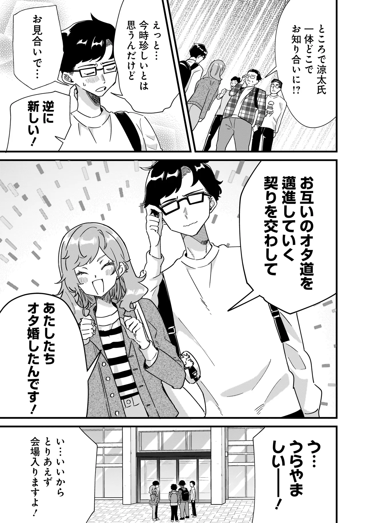 オタ婚のススメ! 第3話 オタ婚のススメ! 投稿者 admin - 1年 前に 幸せな読書漫画 オタ婚のススメ! 第3話 , いいねと共有ボタンをクリックすることを忘れないでください. Manga オタ婚のススメ! 常に更新されます 無料コミック Comic Top. 他のマンガの更新を読むことを忘れないでください。 マンガコレクションのリスト 無料コミック Comic Top マンガリストメニューにあります. お友達と共有しましょう! Facebook Twitter Pinterest Whatsapp 前のエピソード すべての章 次のエピソード リスト ページング Loading.. 前のエピソード すべての章 次のエピソード リスト ページング お友達と共有しましょう! Facebook Twitter Pinterest Whatsapp お気に入りに追加に続く 0 人 オタ婚のススメ! プロ漫画家を苦戦しながらも目指している東雲涼太は、「恋愛経験ないからラブコメの解像度が低いのだ」という周囲からのアドバイスに辟易していた。一方サラリーマンとの兼業で同人作家をしている小田明美は、家族からの結婚の圧力だけが悩みの種だった。そんなふたりが縁談で出会い、互いの利害の一致から交際0日で入籍を決意。オタクとしての自由な活動のための、偽装の夫婦生活が始まった――!! 砂履シンシャ オタククセになるハッピーラブコメ同居夫婦家族推し活日常系笑える