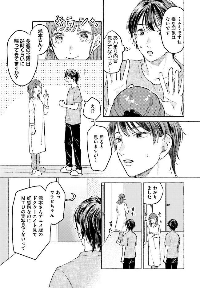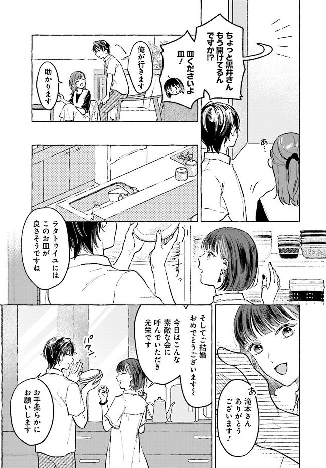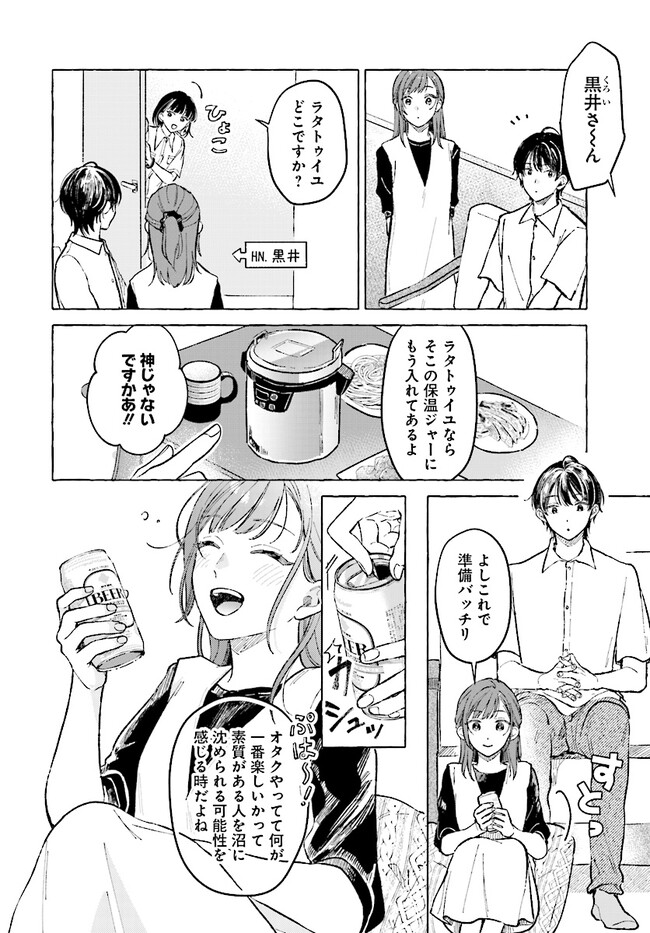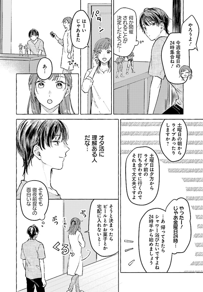 会社では趣味を秘密にしていた咲月だったが、イベント会場でいきなりプロポーズしたのはドルオタではなく、同僚の滝本だった。