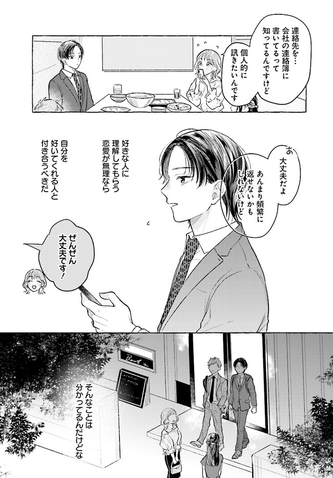 会社では趣味を秘密にしていた咲月だったが、イベント会場でいきなりプロポーズしたのはドルオタではなく、同僚の滝本だった。