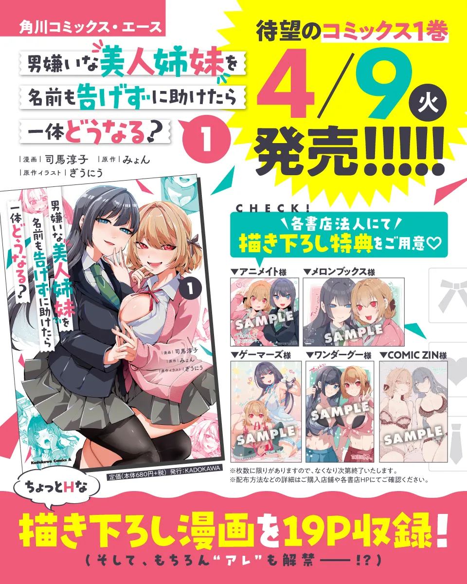 男嫌いな美人姉妹を名前も告げずに助けたら一体どうなる? コミックス第1巻発売告知
