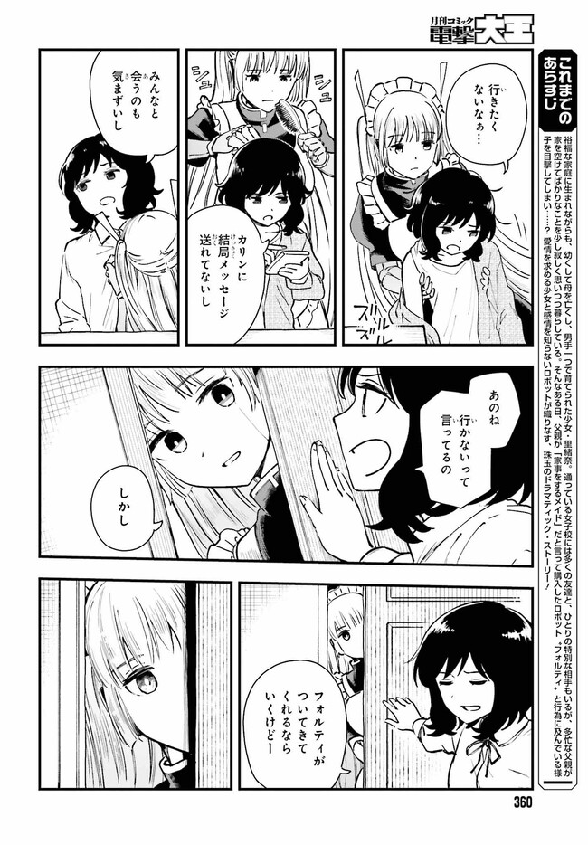 裕福な家庭に生まれながらも幼くして母親を失い、 男手ひとつで育てられた少女・里緒奈。 通っている女子校には多くの友達と、ひとりの特別な相手もいるが、 多忙な父親が家を空けてばかりなことを少し寂しく思いつつ暮らしている。 そんなある日、父親が「家事をするメイド」だと言って購入したロボット "フォルティ"と行為に及んでいる様子を目撃してしまい……? 愛情を求める少女と、感情を知らないロボットが織りなす 珠玉のドラマティック・ストーリー!