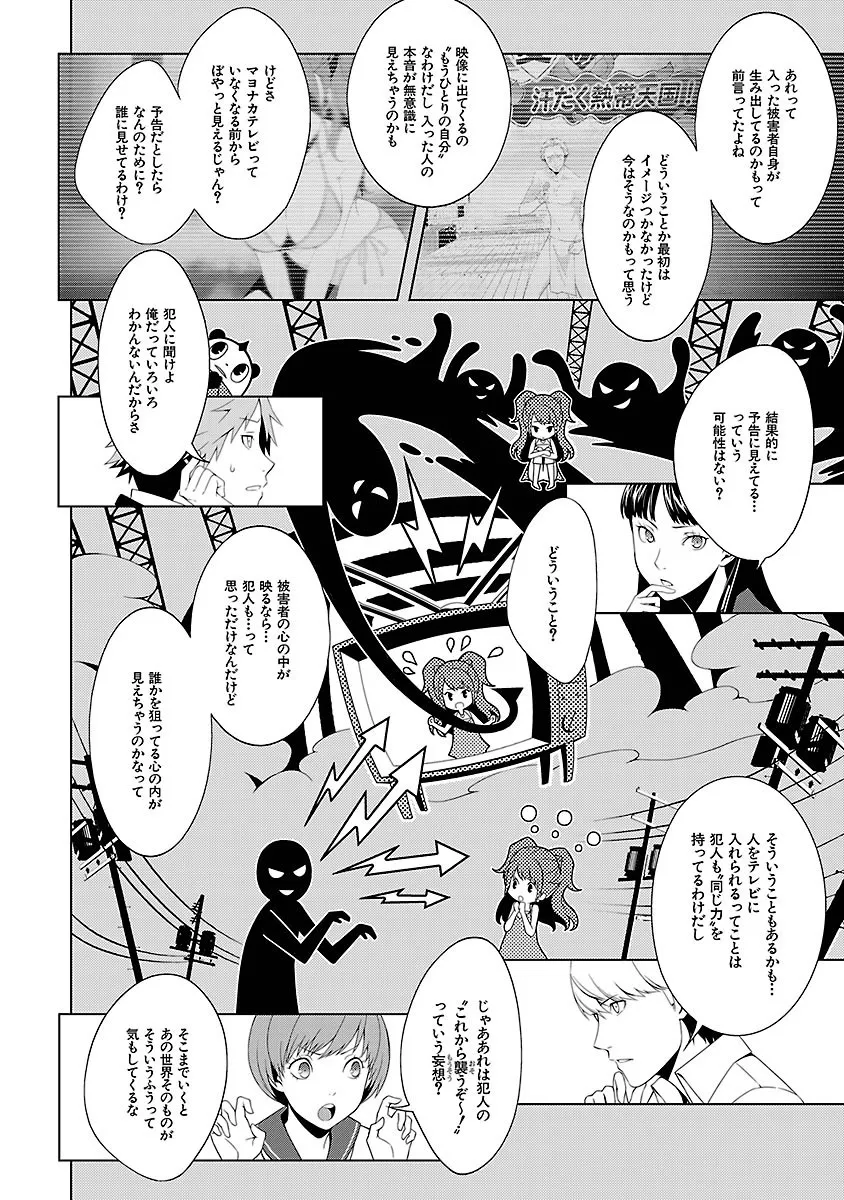 両親の都合で親戚の家に預けられることになった瀬多総司は、転校先の学校で “マヨナカテレビ” と呼ばれる不思議な噂を耳にする。新しくできた級友たちと共にその真相を確かめようとしたとき “テレビの中の異世界” へと迷い込んでしまった――。 テレビの中を彷徨う少年少女たちの学園成長もの、スタート!