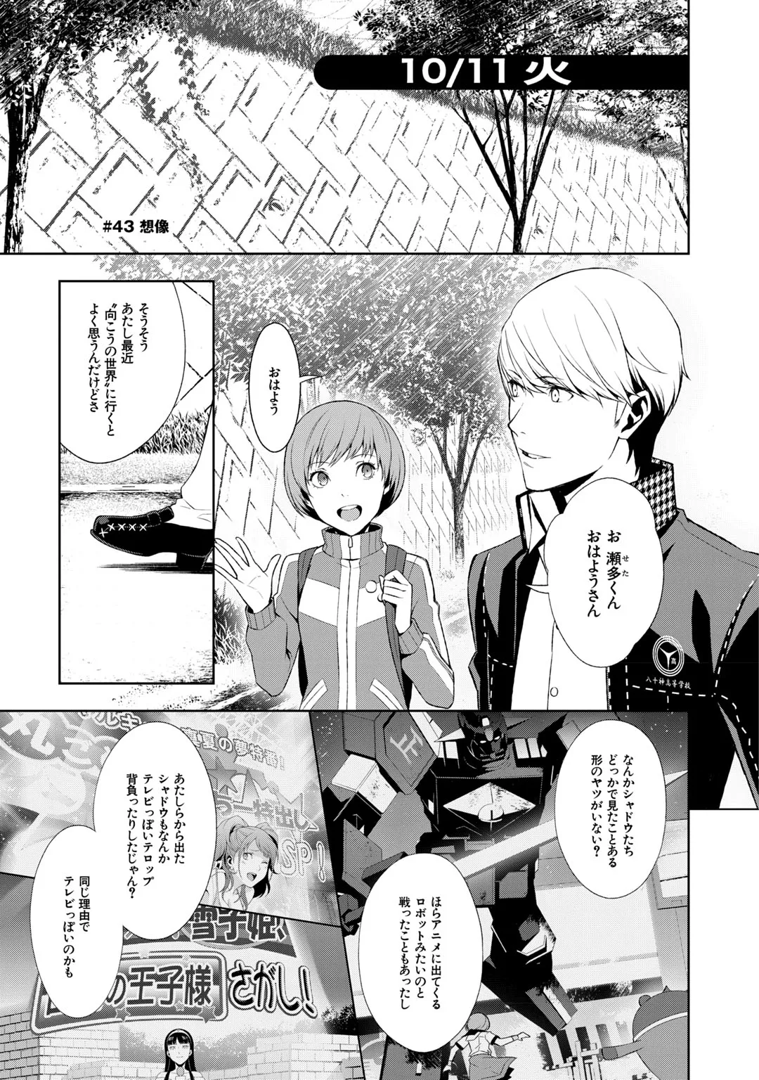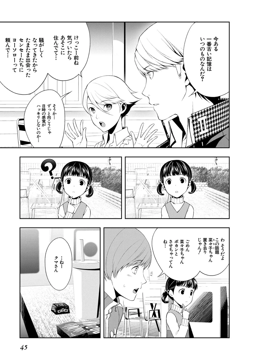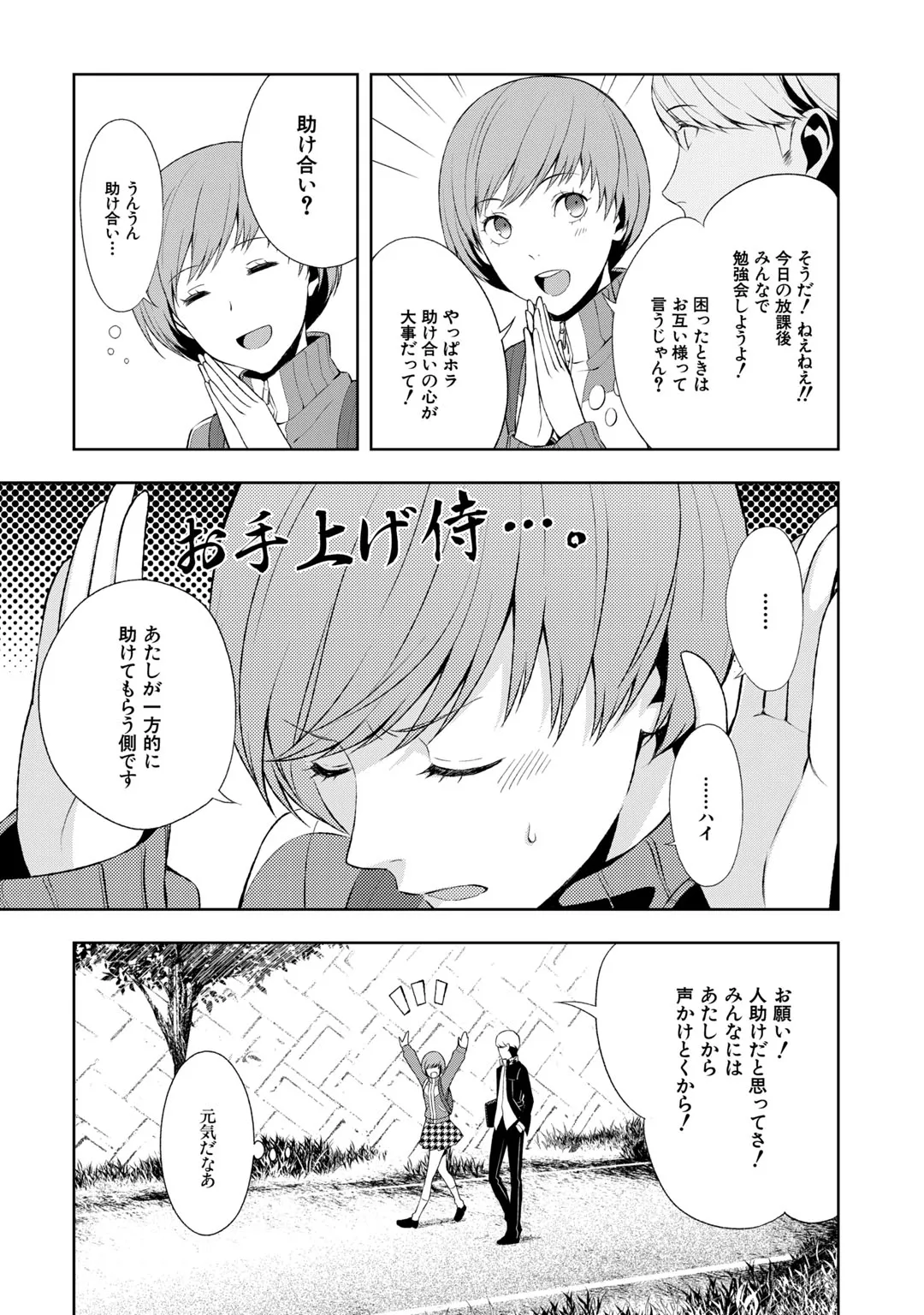 ペルソナ4 #43:IMAGINE ペルソナ4 投稿者 admin - 1か月 前に 幸せな読書漫画 ペルソナ4 #43:IMAGINE , いいねと共有ボタンをクリックすることを忘れないでください. Manga ペルソナ4 常に更新されます 無料コミック Comic Top. 他のマンガの更新を読むことを忘れないでください。 マンガコレクションのリスト 無料コミック Comic Top マンガリストメニューにあります. お友達と共有しましょう! Facebook Twitter Pinterest Whatsapp 前のエピソード すべての章 次のエピソード リスト ページング Loading.. 前のエピソード すべての章 次のエピソード リスト ページング お友達と共有しましょう! Facebook Twitter Pinterest Whatsapp お気に入りに追加に続く 0 人 ペルソナ4 両親の都合で親戚の家に預けられることになった瀬多総司は、転校先の学校で “マヨナカテレビ” と呼ばれる不思議な噂を耳にする。新しくできた級友たちと共にその真相を確かめようとしたとき “テレビの中の異世界” へと迷い込んでしまった――。 テレビの中を彷徨う少年少女たちの学園成長もの、スタート! 曽我部修司 アニメ化コミカライズ学園モノ
