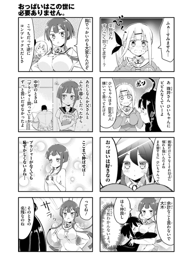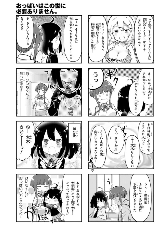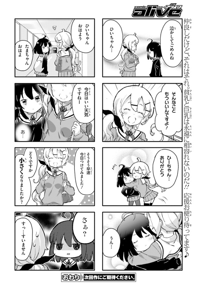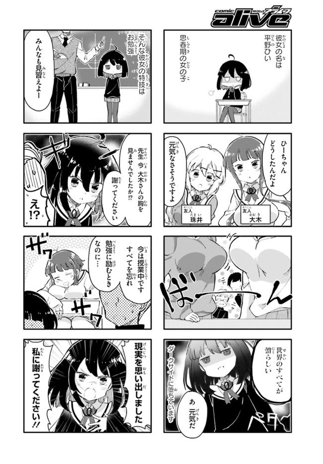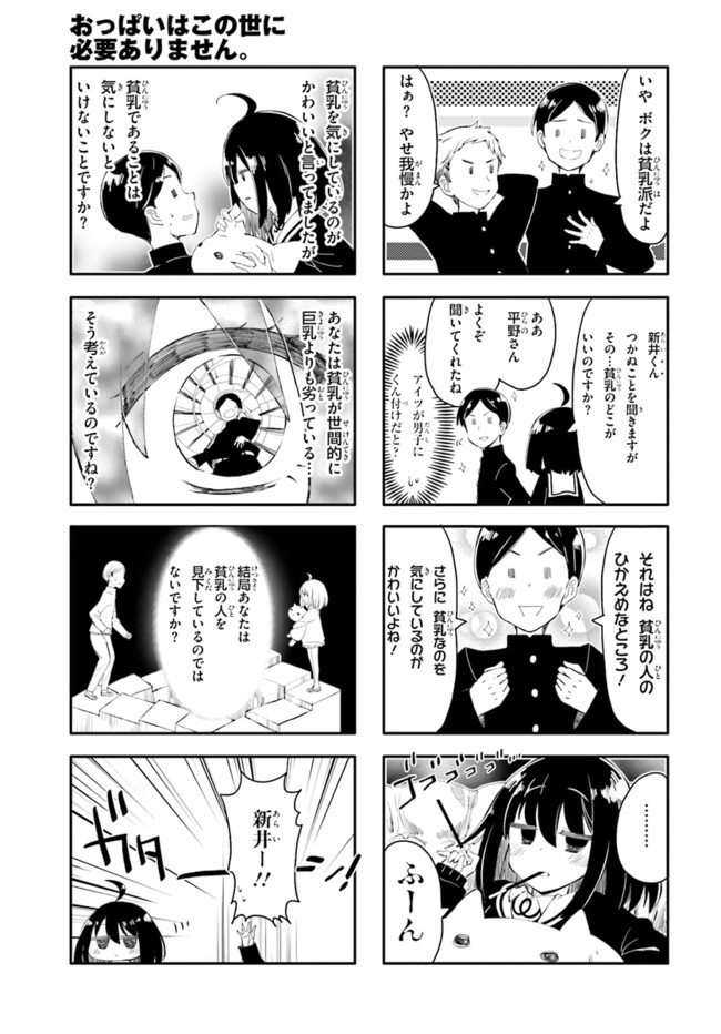 女子高生・ひいちゃんの嫌いなものは巨乳の女! 全国の貧乳女子もらい泣き必至の「ひんぬー4コマ」! コミックス全④巻発売中!