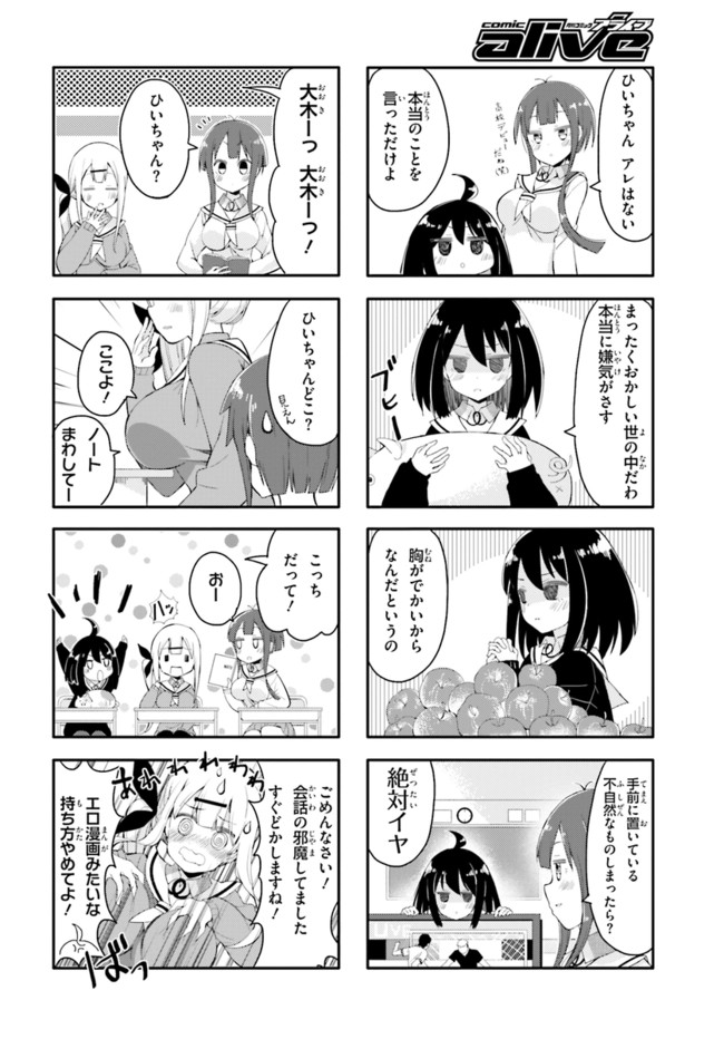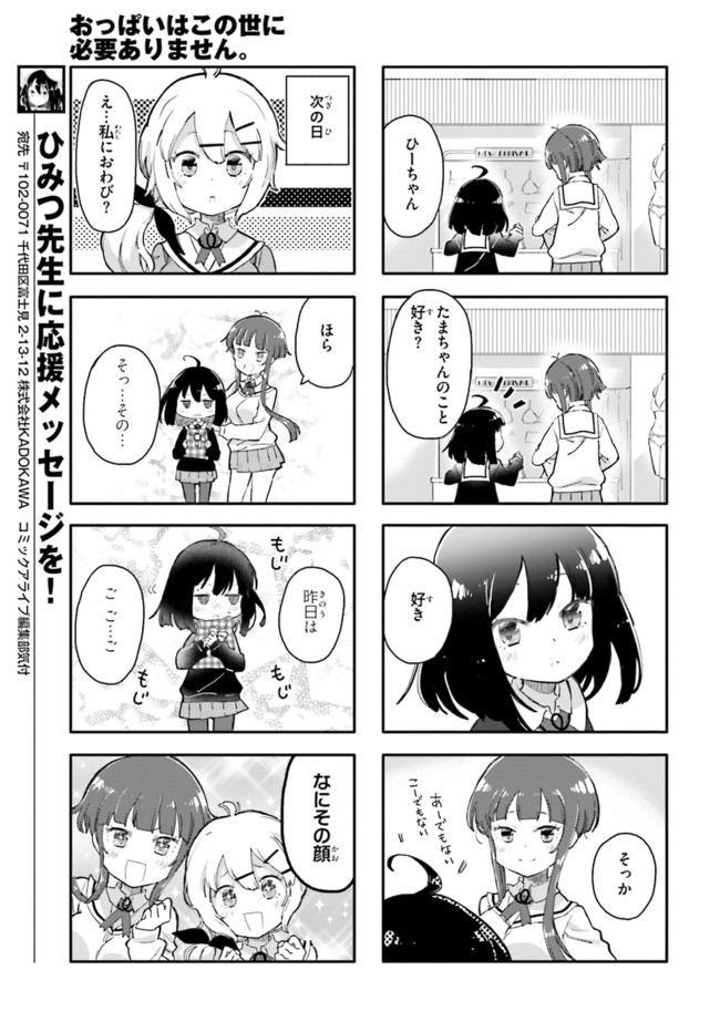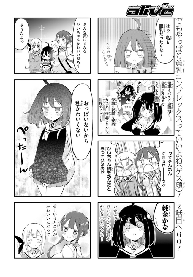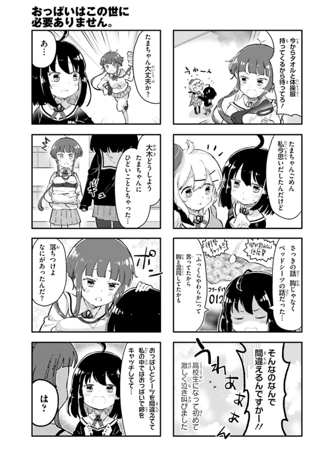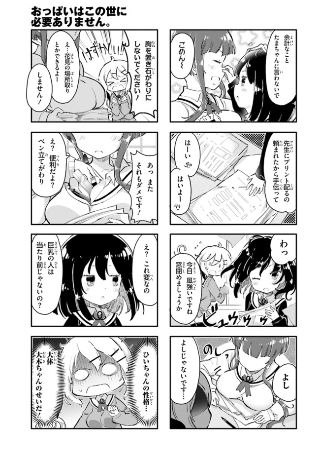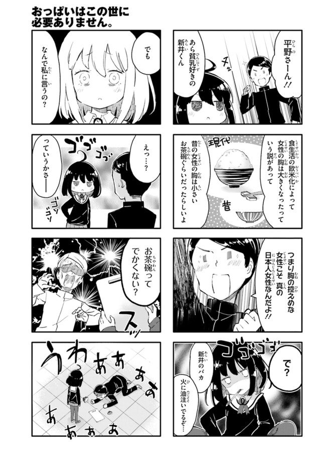 女子高生・ひいちゃんの嫌いなものは巨乳の女! 全国の貧乳女子もらい泣き必至の「ひんぬー4コマ」! コミックス全④巻発売中!