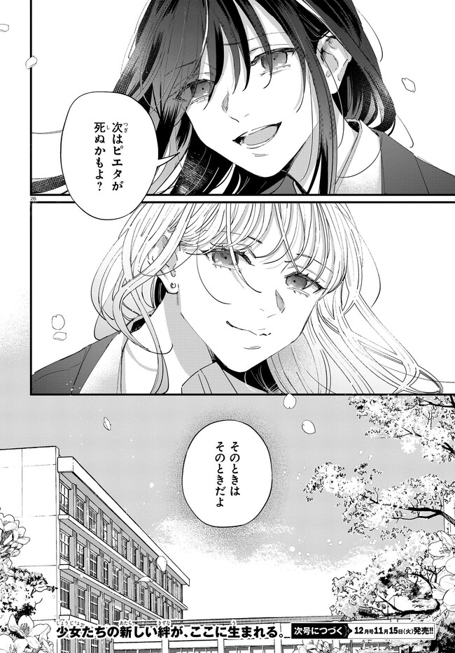 ピエタとトランジ 第2話③ ピエタとトランジ 投稿者 admin - 3年 前に 幸せな読書漫画 ピエタとトランジ 第2話③ , いいねと共有ボタンをクリックすることを忘れないでください. Manga ピエタとトランジ 常に更新されます 無料コミック Comic Top. 他のマンガの更新を読むことを忘れないでください。 マンガコレクションのリスト 無料コミック Comic Top マンガリストメニューにあります. お友達と共有しましょう! Facebook Twitter Pinterest Whatsapp 前のエピソード すべての章 次のエピソード リスト ページング Loading.. 前のエピソード すべての章 次のエピソード リスト ページング お友達と共有しましょう! Facebook Twitter Pinterest Whatsapp お気に入りに追加に続く 0 人 ピエタとトランジ 平凡な日々を送る女子高生・ピエタと、そのクラスに転校してきた少女・トランジ。 トランジは殺人事件を誘発する体質の持ち主で、探偵でもあった。彼女に惚れ込んだピエタは助手に名乗り出て――!? 芥川賞作家が描く爽快なシスターフッド・サスペンス待望のコミカライズ!! キスガエ(漫画)藤野可織(原作) コミカライズサスペンスシスターフッドロマンシス助手女子バディ探偵