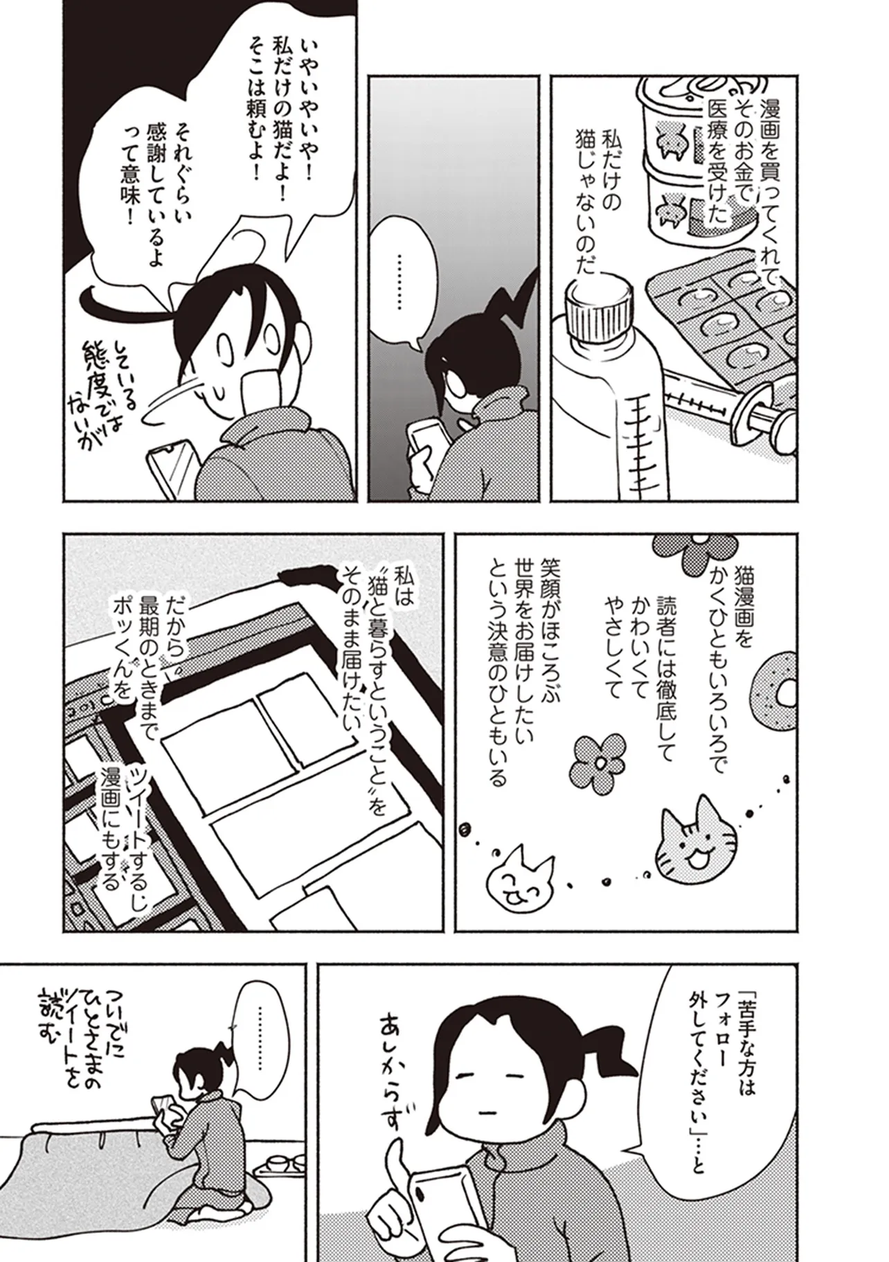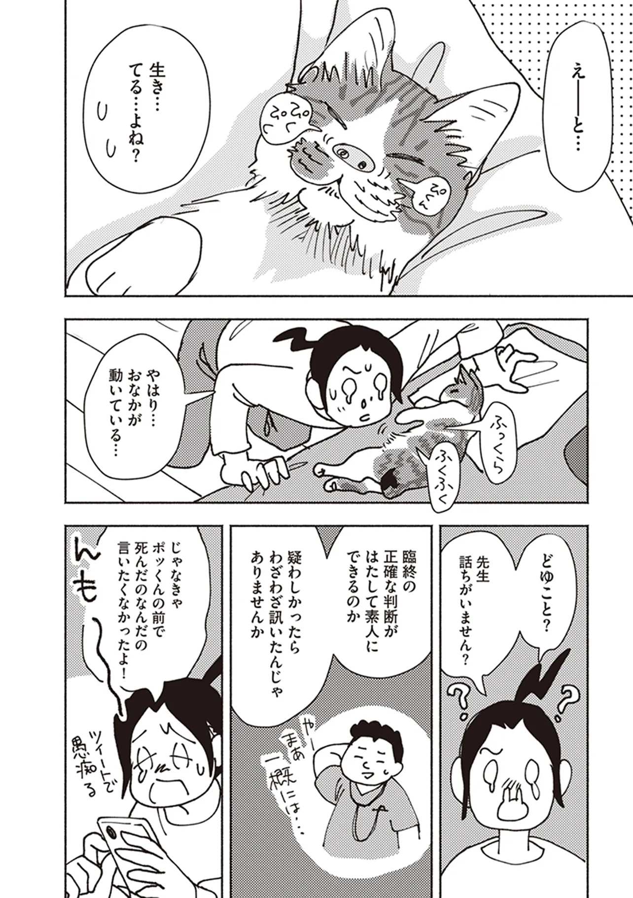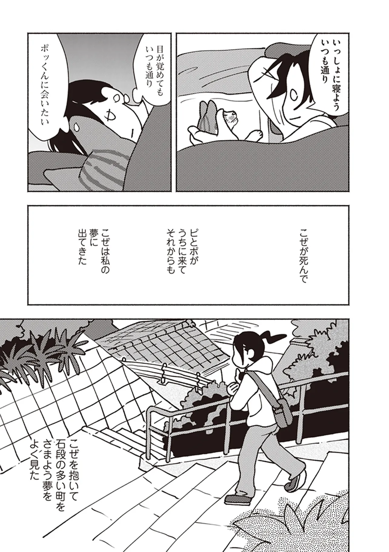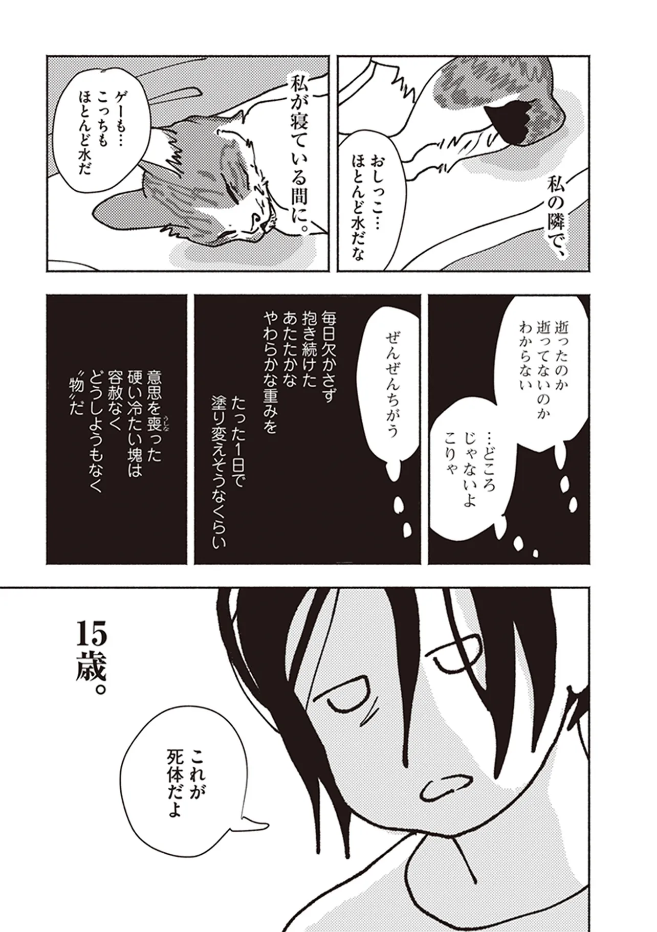 ポッケの旅支度 臨界 ポッケの旅支度 投稿者 admin - 4か月 前に 幸せな読書漫画 ポッケの旅支度 臨界 , いいねと共有ボタンをクリックすることを忘れないでください. Manga ポッケの旅支度 常に更新されます 無料コミック Comic Top. 他のマンガの更新を読むことを忘れないでください。 マンガコレクションのリスト 無料コミック Comic Top マンガリストメニューにあります. お友達と共有しましょう! Facebook Twitter Pinterest Whatsapp 前のエピソード すべての章 次のエピソード リスト ページング Loading.. 前のエピソード すべての章 次のエピソード リスト ページング お友達と共有しましょう! Facebook Twitter Pinterest Whatsapp お気に入りに追加に続く 0 人 ポッケの旅支度 きみのいない世界は、どうしようもなくさびしいよ。 飼い猫・ポッケとの最期の日々と“それから”を綴り、Twitterで12.9万いいねの大反響を巻き起こしたエッセイが、描き下ろしを加えてついに単行本化! 野良猫だったポッケとピップ。イシデさん家に居ついてから15年が経ったころ、ポッケに病が見つかった。残されたわずかな時間。心にこびりついている、後悔を残して見送った前の猫の記憶。たいせつな猫の旅立ちに、どう寄り添うことができるだろう。 イシデ電(著者) コミックエッセイペットほっこり切ない動物泣ける猫