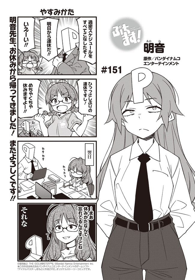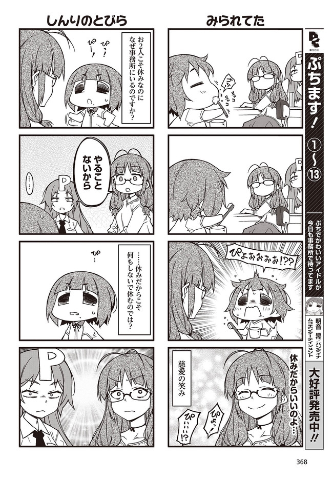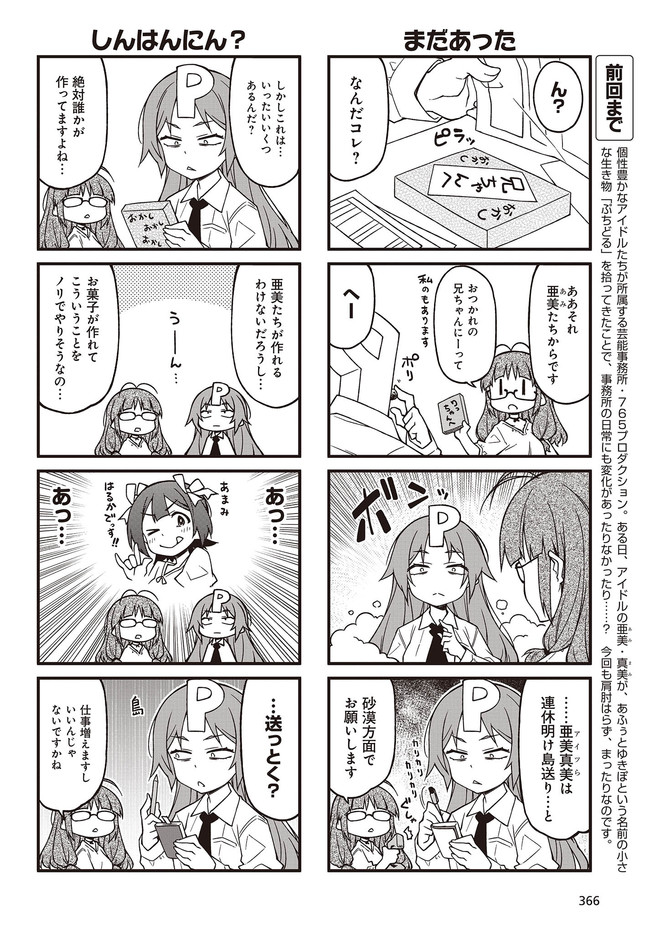 人気タイトル『アイドルマスター』の世界から、ぷちっとスピンアウトした不思議カワイイ4コマ。今日もプロデューサーのみなさんに癒やしをお届けします。コミックス10巻はオリジナルアニメDVD付き限定版も予約受付中!