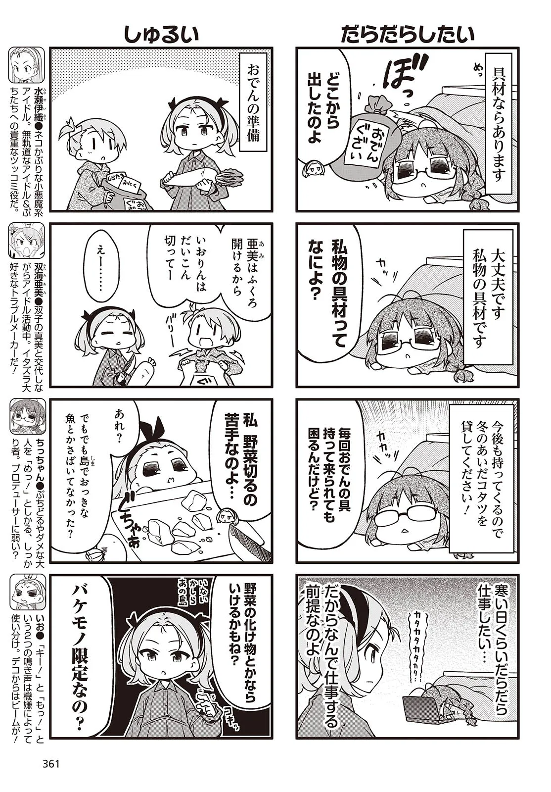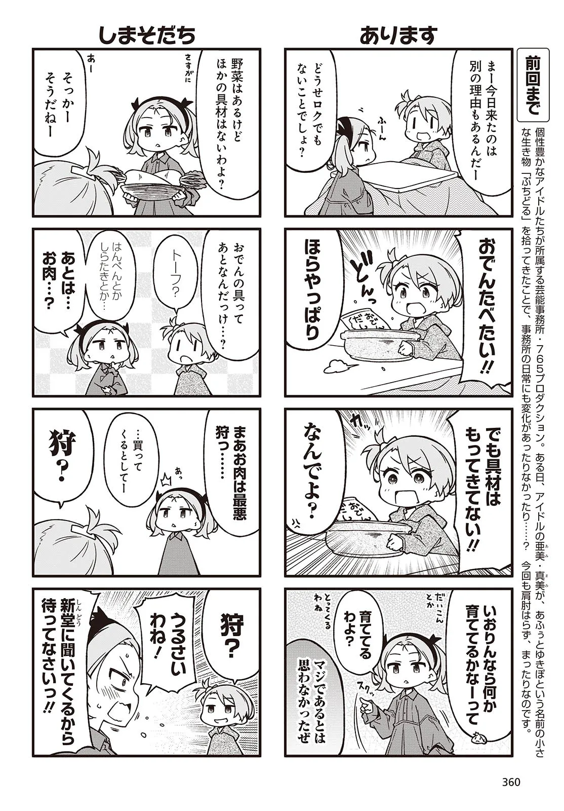 人気タイトル『アイドルマスター』の世界から、ぷちっとスピンアウトした不思議カワイイ4コマ。今日もプロデューサーのみなさんに癒やしをお届けします。コミックス10巻はオリジナルアニメDVD付き限定版も予約受付中!
