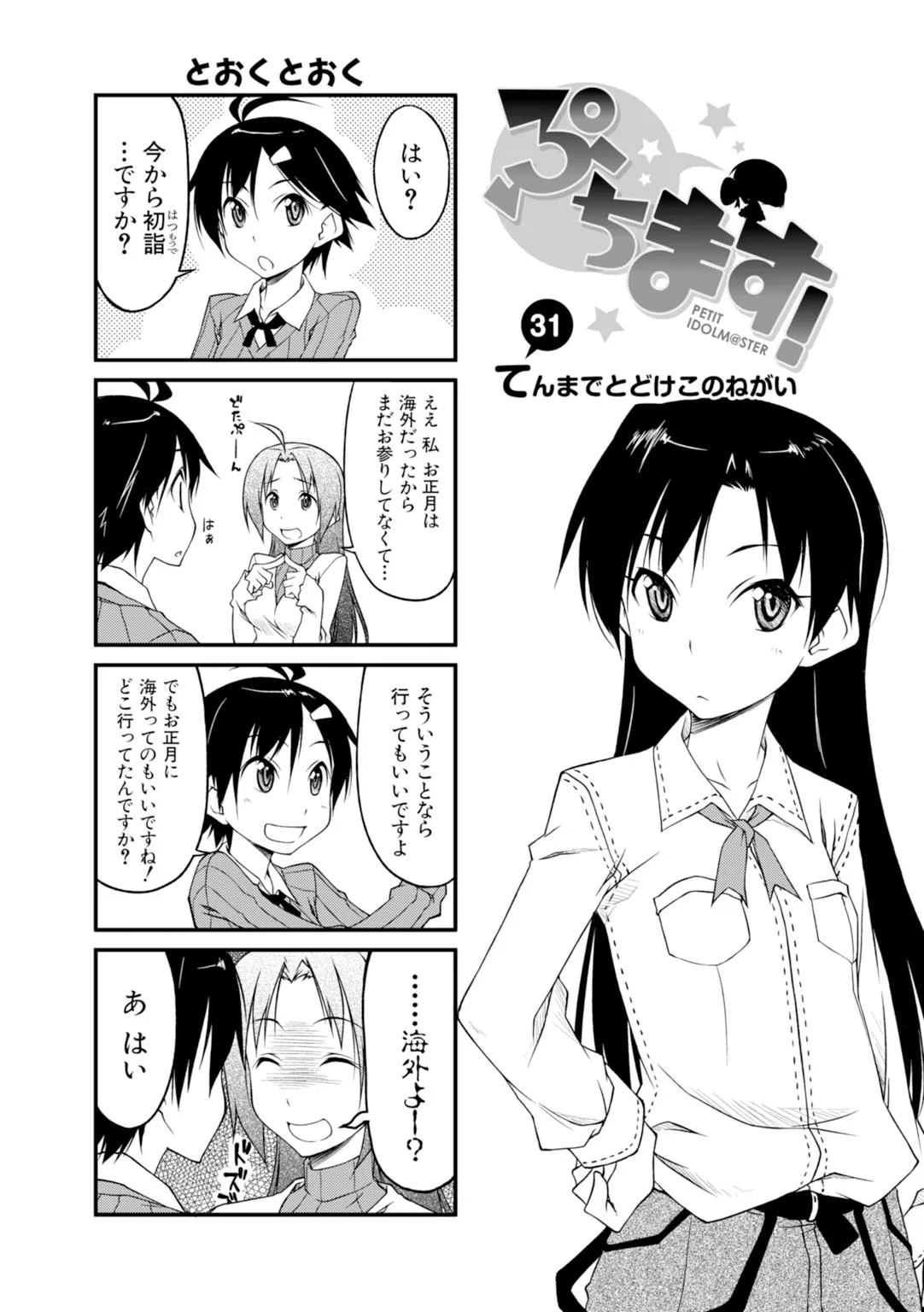ぷちます! #31 てんまでとどけこのねがい ぷちます! 投稿者 admin - 10か月 前に 幸せな読書漫画 ぷちます! #31 てんまでとどけこのねがい , いいねと共有ボタンをクリックすることを忘れないでください. Manga ぷちます! 常に更新されます 無料コミック Comic Top. 他のマンガの更新を読むことを忘れないでください。 マンガコレクションのリスト 無料コミック Comic Top マンガリストメニューにあります. お友達と共有しましょう! Facebook Twitter Pinterest Whatsapp 前のエピソード すべての章 次のエピソード リスト ページング Loading.. 前のエピソード すべての章 次のエピソード リスト ページング お友達と共有しましょう! Facebook Twitter Pinterest Whatsapp お気に入りに追加に続く 1 人 ぷちます! 人気タイトル『アイドルマスター』の世界から、ぷちっとスピンアウトした不思議カワイイ4コマ。今日もプロデューサーのみなさんに癒やしをお届けします。コミックス10巻はオリジナルアニメDVD付き限定版も予約受付中! 4コマアニメ化コメディ日常系