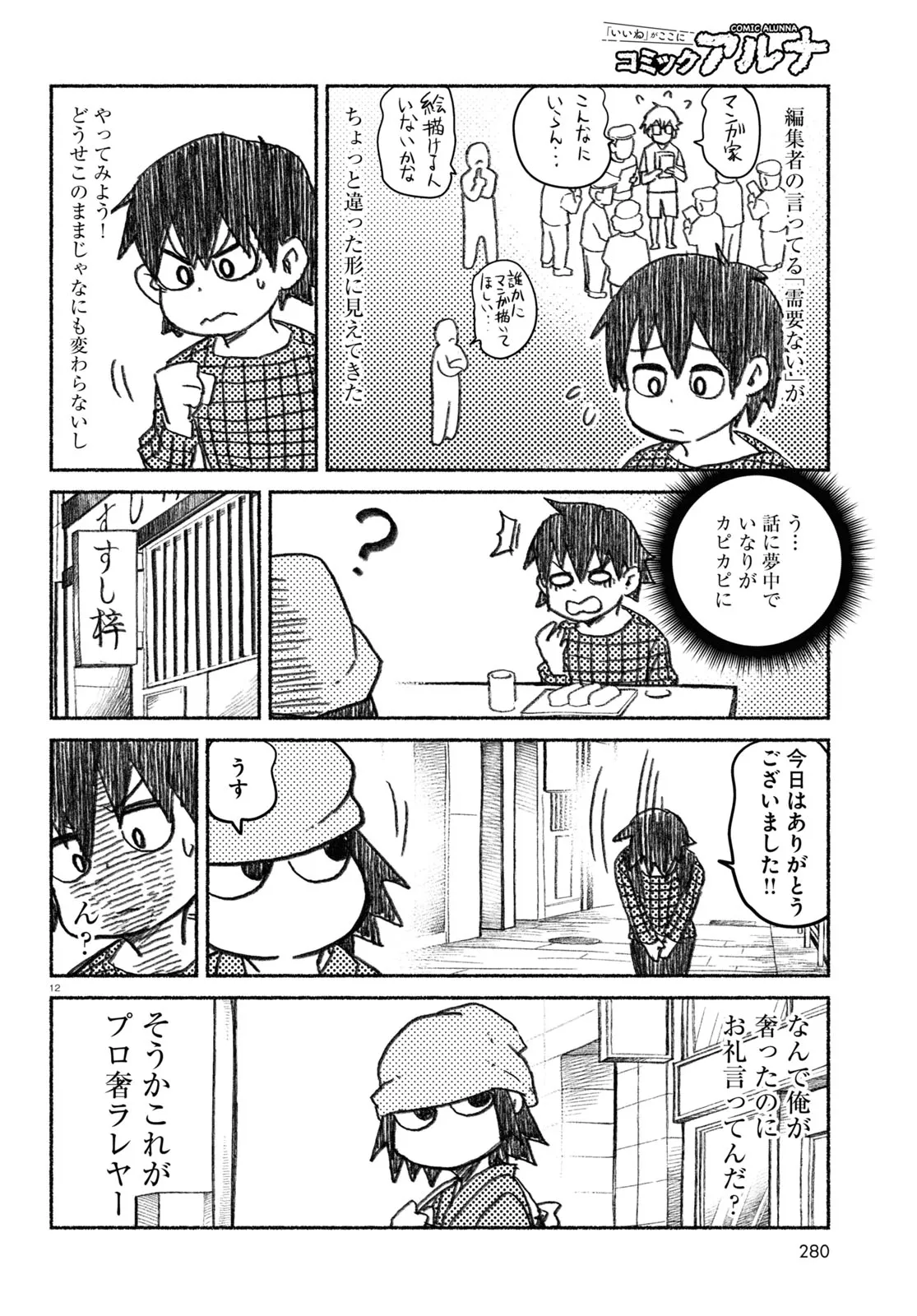 ギリギリ漫画家・萬田は何度もボツをくらい、生活も苦しくなり実家に戻る寸前。 そんななかプロ奢ラレヤーに奢ったことによって、萬田の運命が大きく変わりだす!! 人に奢られて生活をするプロ奢ラレヤーと新人漫画家・萬田が人間のリアルに触れるストーリー!