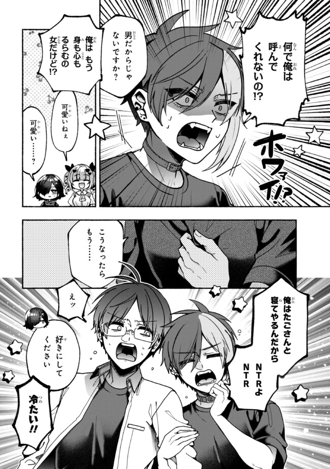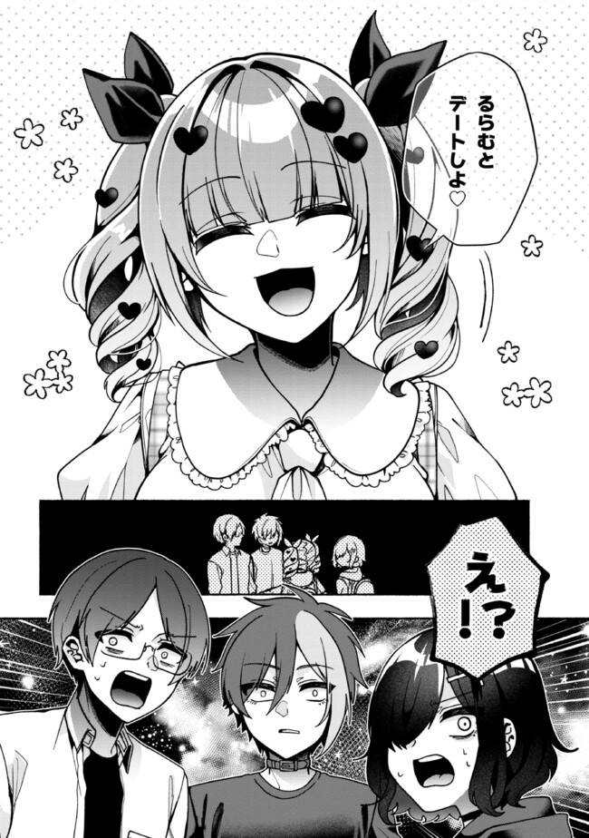 最近話題のバーチャルライバー「にゃるぴ」を推すVオタ、田子浦高峯(たごうらたかね)はその様子を隣家の幼馴染、津森成海(つもりなるみ)に毒づかれる毎日。しかしある日、ひょんなことから高峯は「にゃるぴ」の中の人が成海であることを知ってしまう! 配信準備や動画制作を手伝わされる中で、「にゃるぴ」と「成海」の間で揺らいで生まれるこの感情はガチ恋なんかじゃない!? バーチャル三角関係ラブコメ、配信開始☆