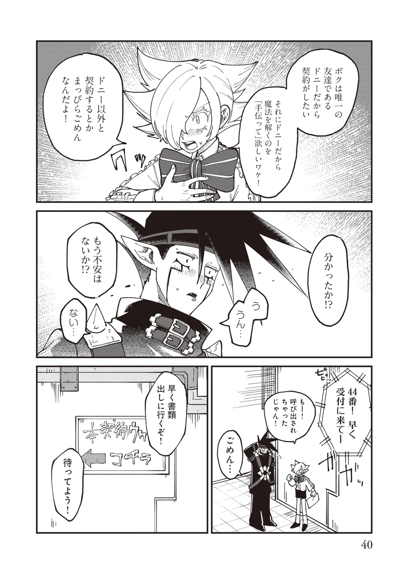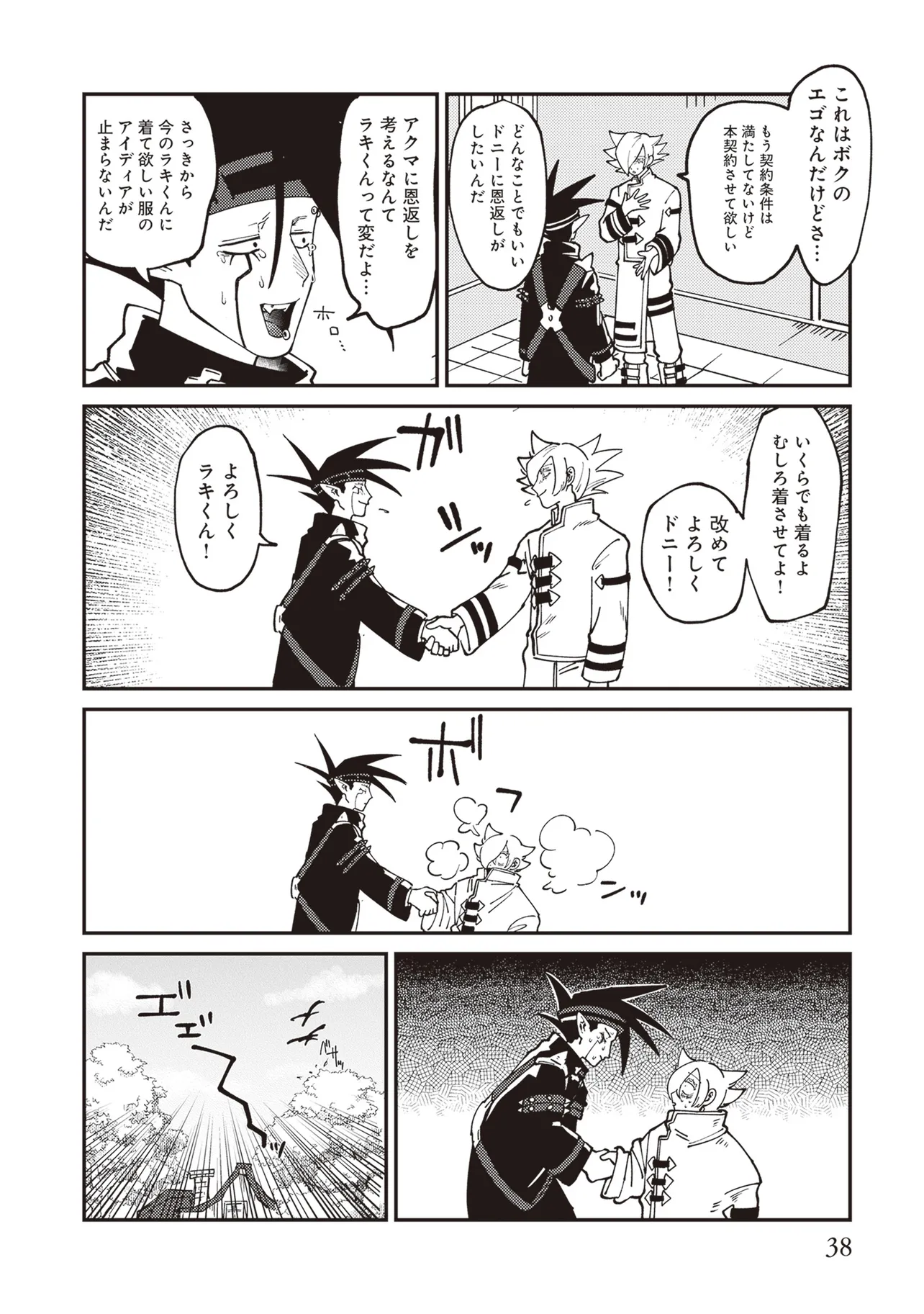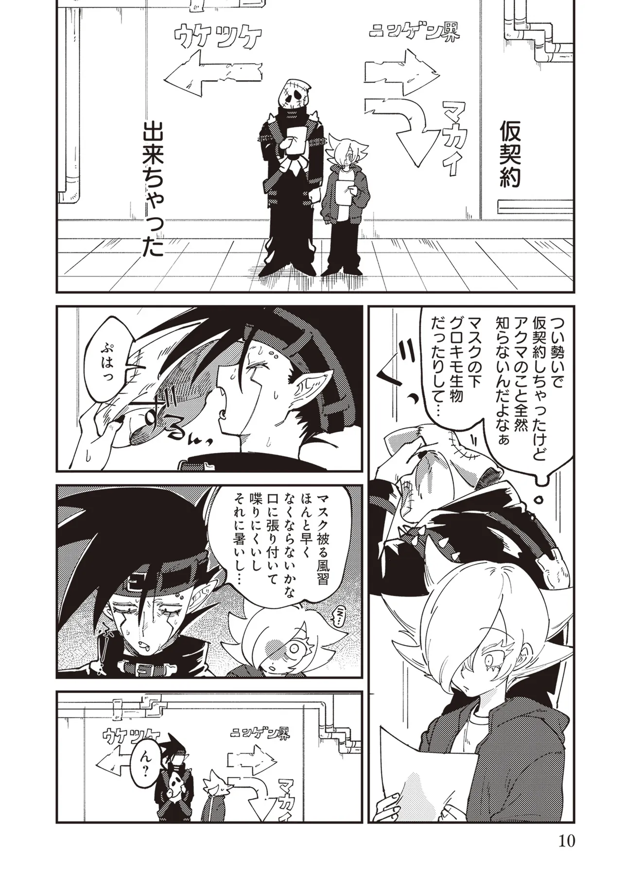 魔法の力により子供の身体で成長が止まったニンゲンのラキ。 カワイイものが大好きなアクマのドニー。 ふたりはニンゲンとアクマが契約するオミアイセンターで対面する。 ラキは魔法を解くため魔界の「解魔方法」を求め、 ドニーはカワイイ服を着てほしくて、それぞれ勢いだけで仮契約をしてしまう! かくしてニンゲンとアクマの魔界物語が始まるのだった!!