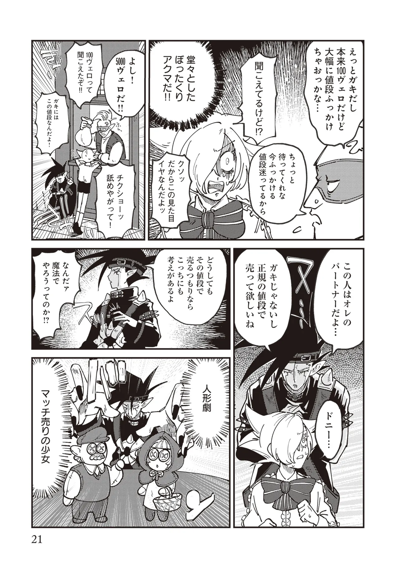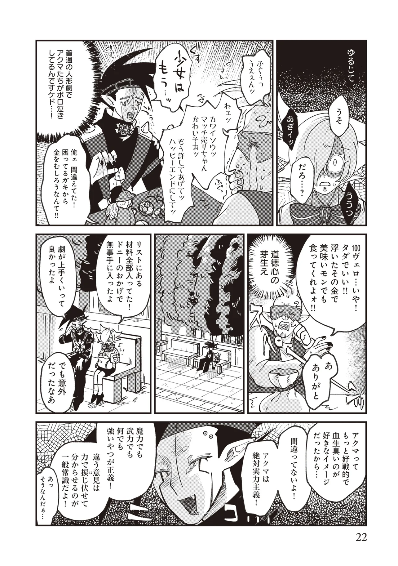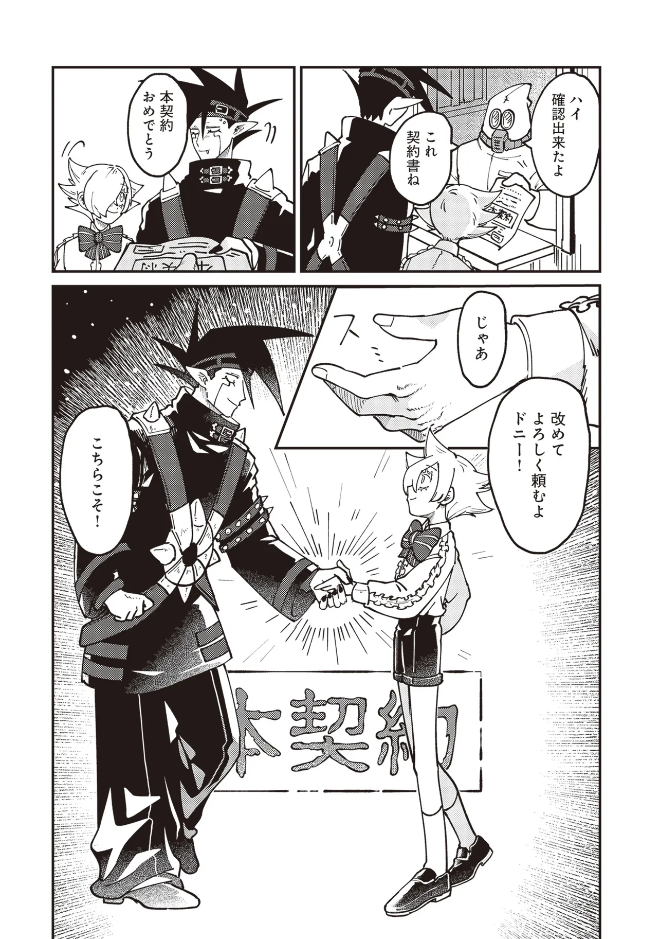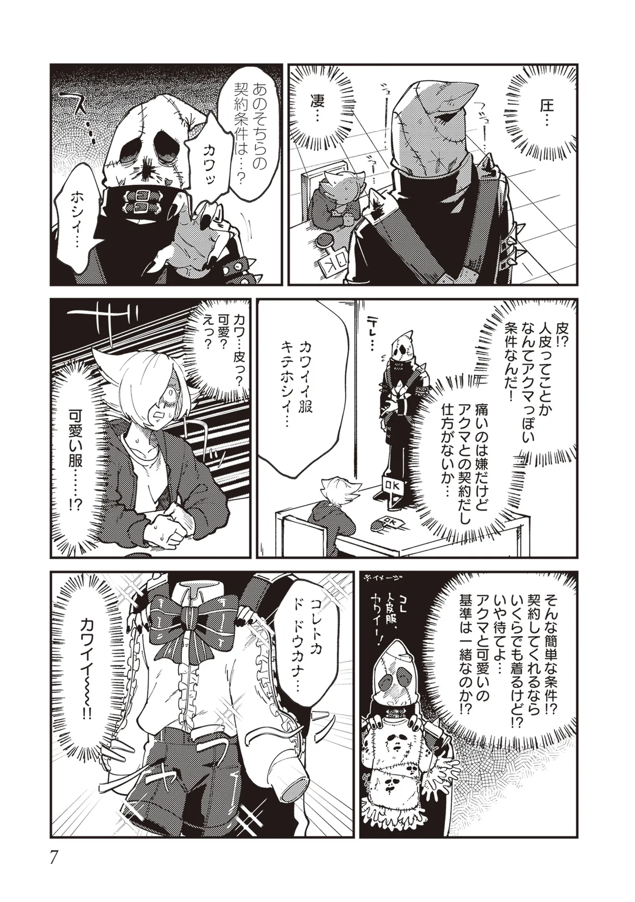 魔法の力により子供の身体で成長が止まったニンゲンのラキ。 カワイイものが大好きなアクマのドニー。 ふたりはニンゲンとアクマが契約するオミアイセンターで対面する。 ラキは魔法を解くため魔界の「解魔方法」を求め、 ドニーはカワイイ服を着てほしくて、それぞれ勢いだけで仮契約をしてしまう! かくしてニンゲンとアクマの魔界物語が始まるのだった!!