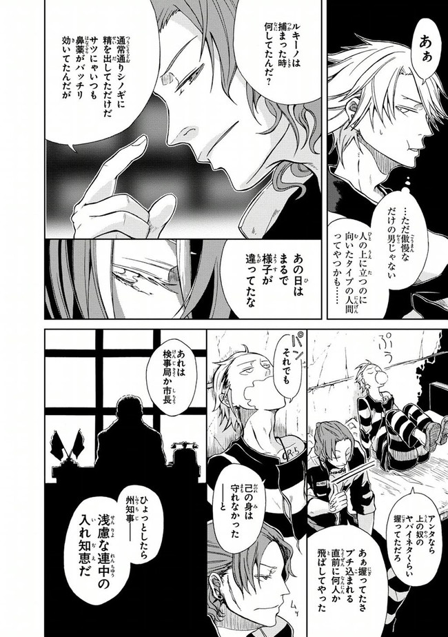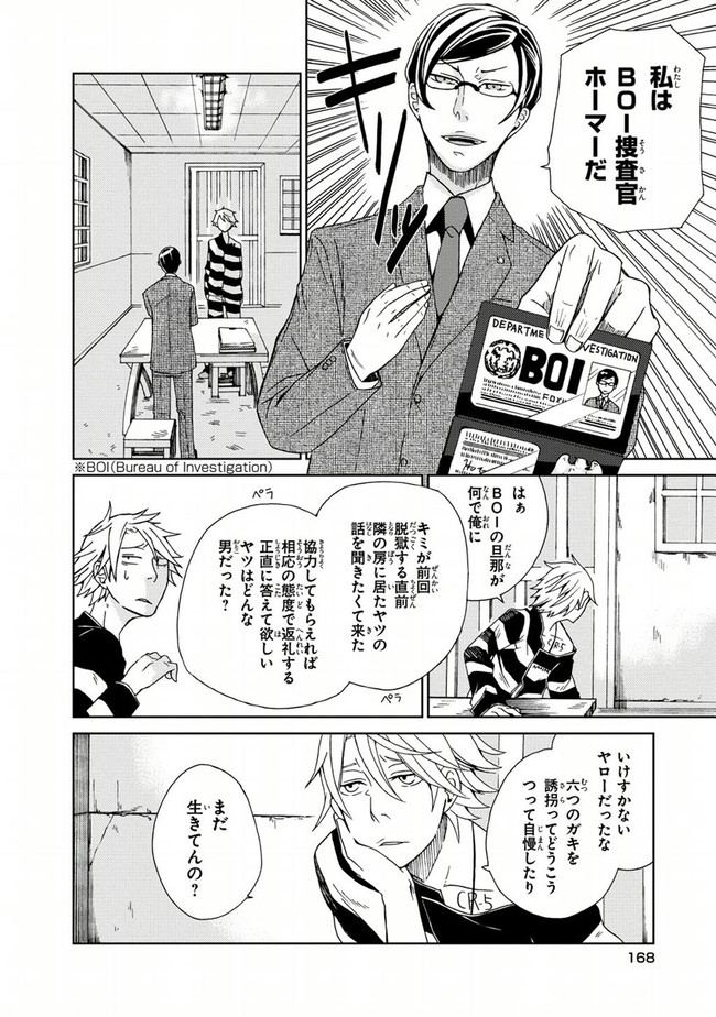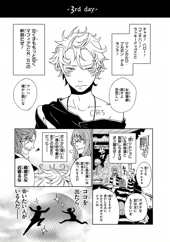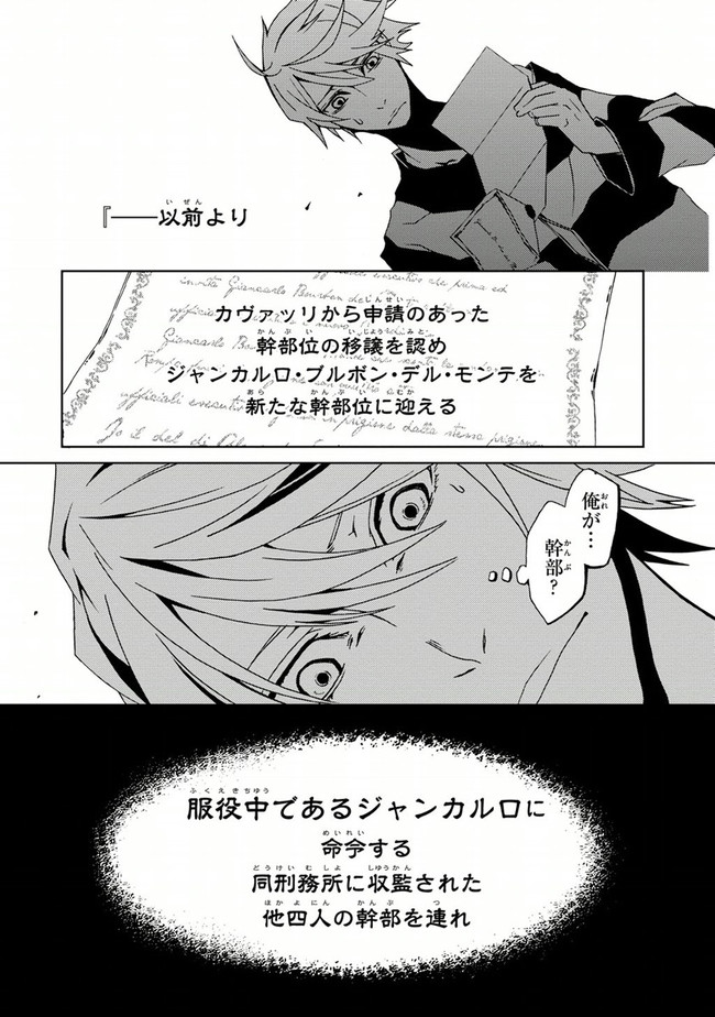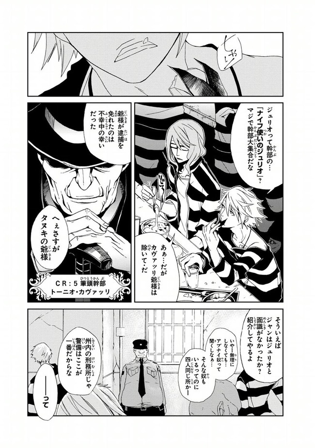1930年代アメリカ——事件はイタリアンマフィア『CR:5』の幹部4人の電撃的な逮捕劇から始まった。“脱獄が趣味”で服役中の下っ端構成員・ジャンカルロは、「収監された幹部4人を脱獄させること」を命ぜられる。報酬はなんと——「CR:5のボスへの昇格」。波乱の脱獄劇が幕を開ける!!!