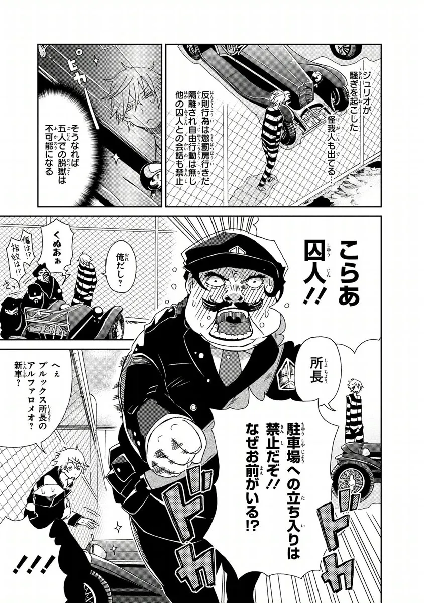 1930年代アメリカ——事件はイタリアンマフィア『CR:5』の幹部4人の電撃的な逮捕劇から始まった。“脱獄が趣味”で服役中の下っ端構成員・ジャンカルロは、「収監された幹部4人を脱獄させること」を命ぜられる。報酬はなんと——「CR:5のボスへの昇格」。波乱の脱獄劇が幕を開ける!!!
