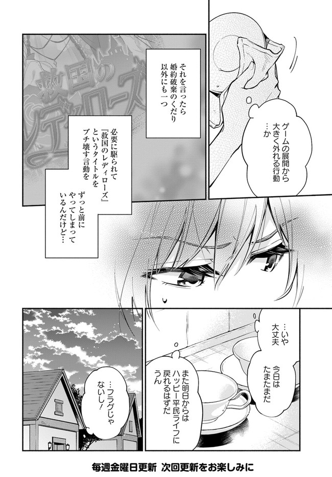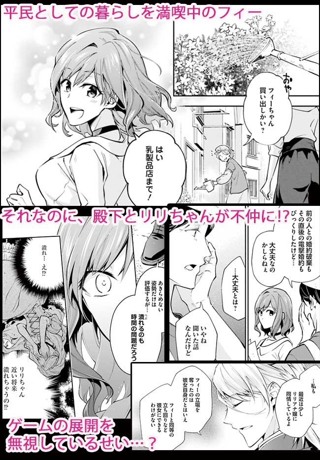 「今日この時をもって貴様との婚約を破棄する」「はい! 喜んで!!」前世でプレイしていた乙女ゲーム「救国のレディローズ」そのままの世界に転生した私・フェリシア。堅苦しいお妃様になるなんて絶対イヤ! これで目標の平民になれる……と思ったのも束の間、王子のお兄様やら義理の弟やら、かつての攻略プレイヤー達から追いかけられる日々が始まり……? 完璧令嬢・フェリシアのお妃様ルート脱出ストーリー!