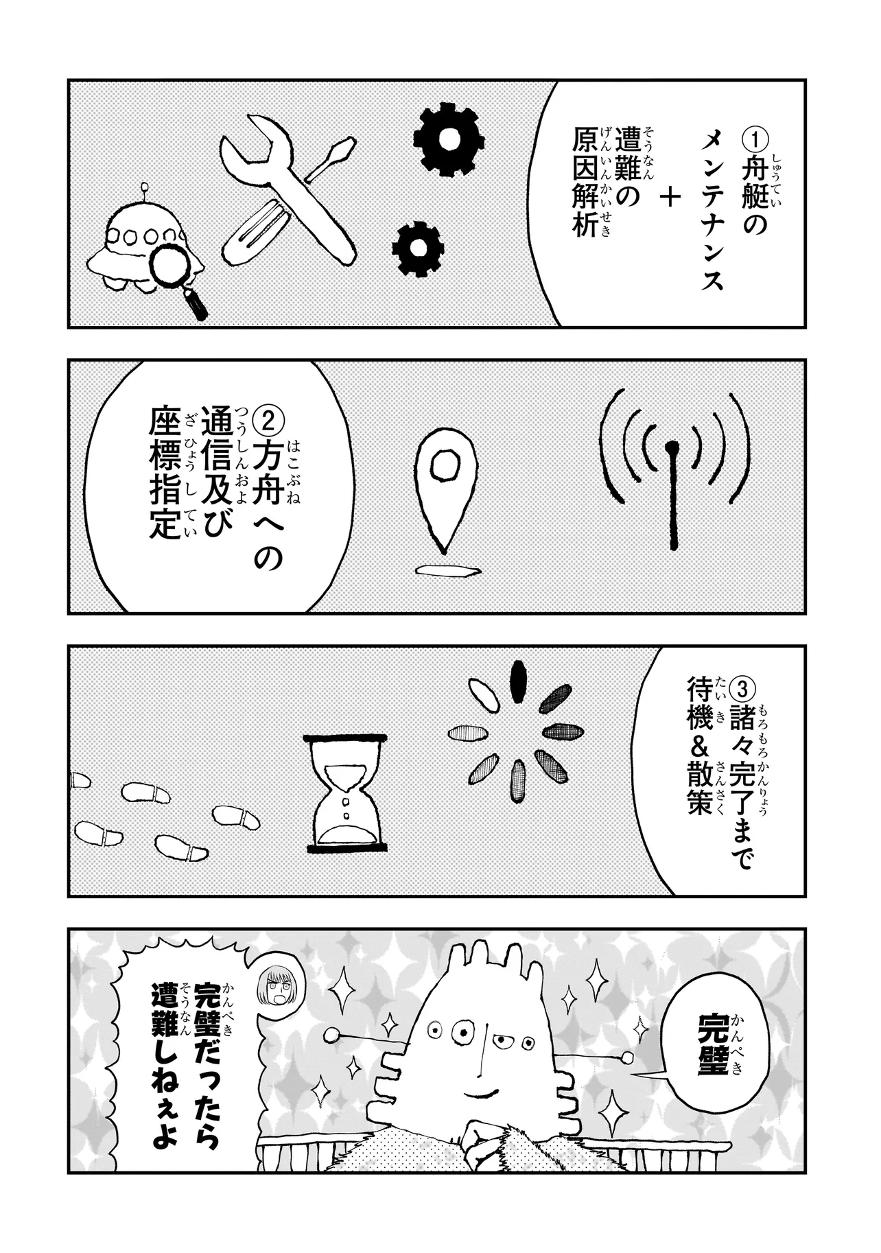刺激的な非日常がはじまるかと思いきや、ノアたちは宇宙船とは思えぬくつろぎっぷりをみせていく。