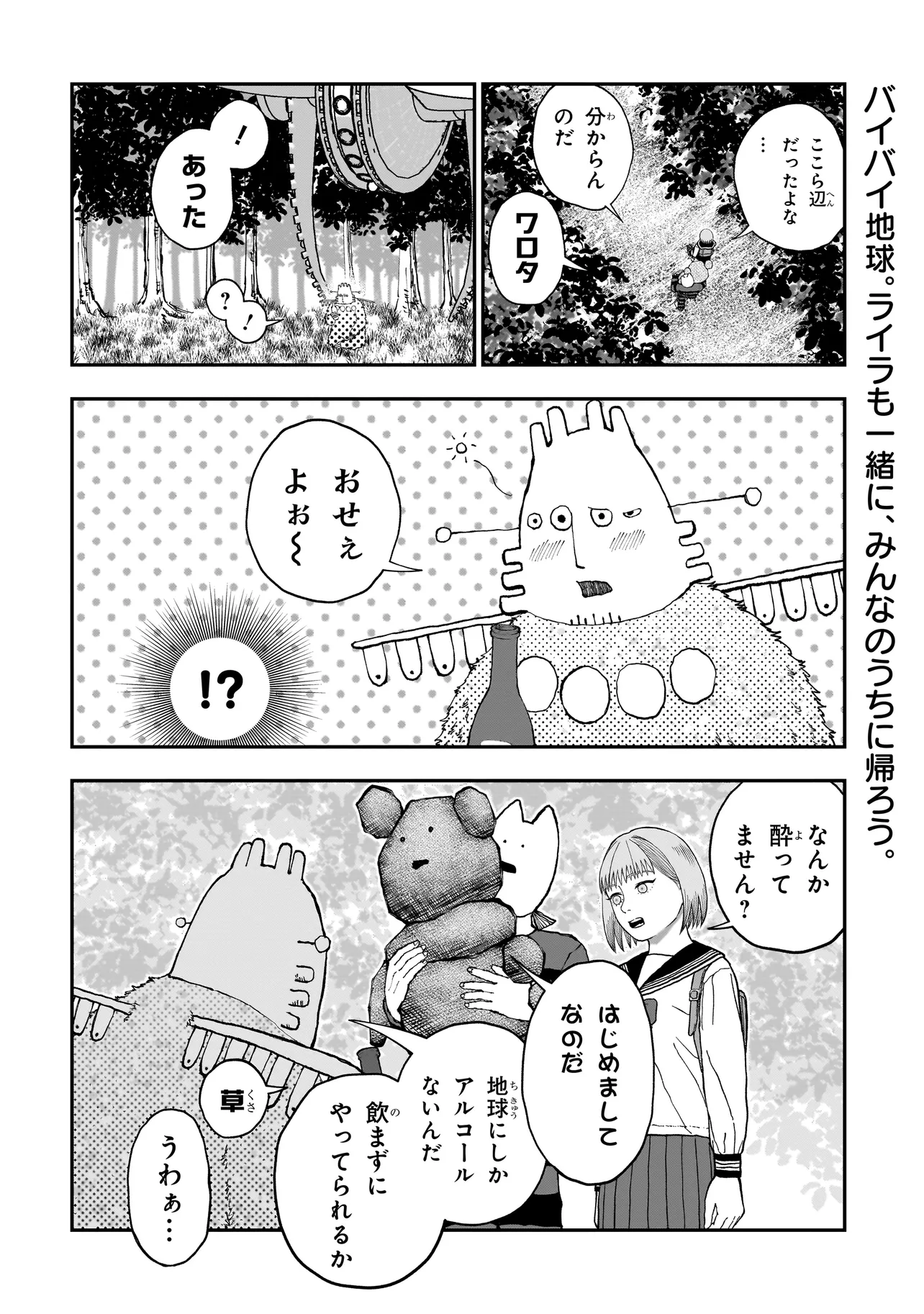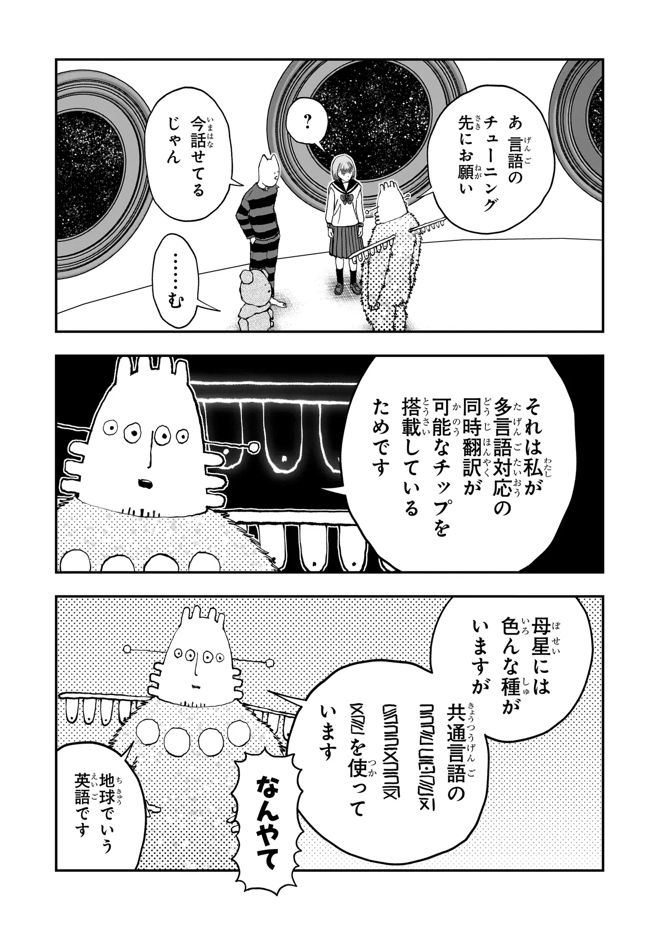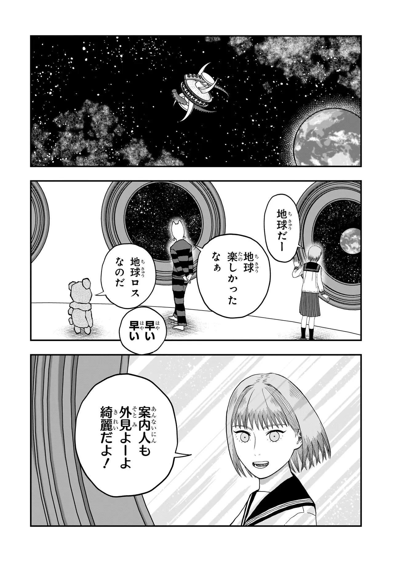 ある日呼び鈴にこたえると、宇宙人である通称『案内人』から、宇宙船にスカウトされる。