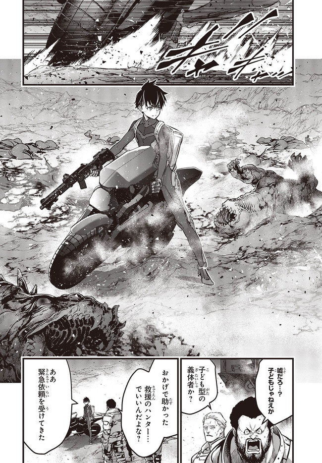 旧文明の遺産を求め、数多の遺跡にハンターがひしめき合う世界。新米ハンター・アキラはスラム街から成り上がるために踏み入れた旧世界の遺跡で、全裸でたたずむ謎の美女・アルファと出会う――。