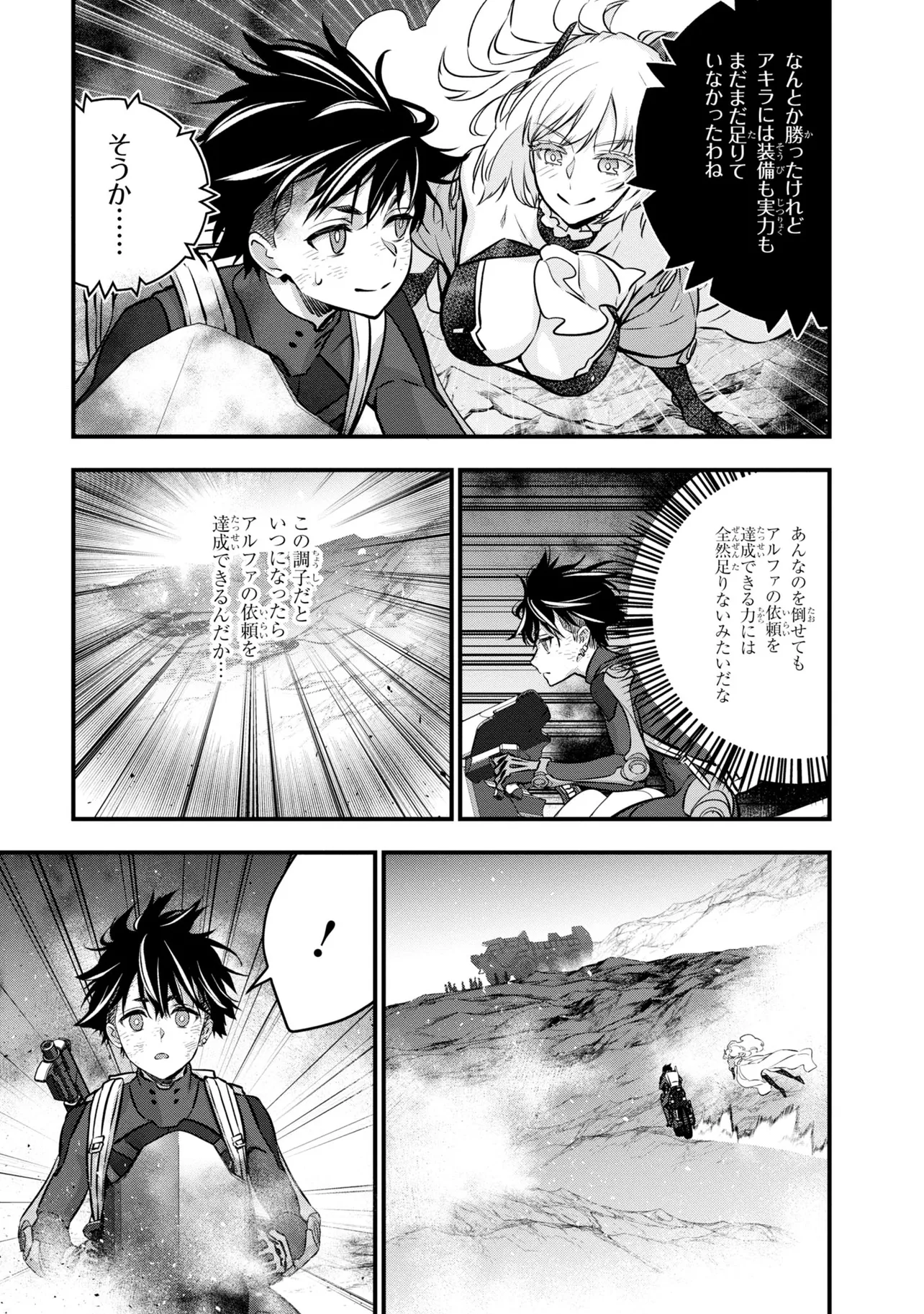 旧文明の遺産を求め、数多の遺跡にハンターがひしめき合う世界。新米ハンター・アキラはスラム街から成り上がるために踏み入れた旧世界の遺跡で、全裸でたたずむ謎の美女・アルファと出会う――。