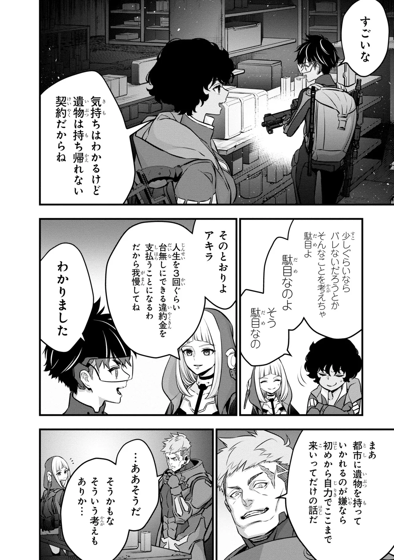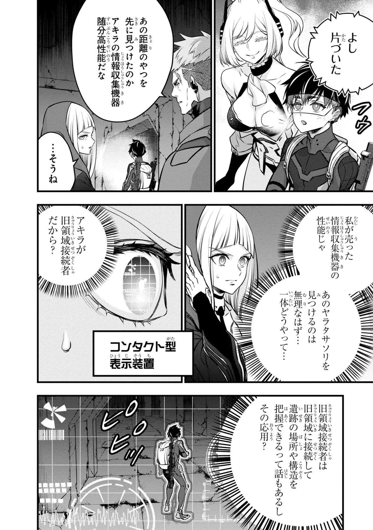 電撃《新文芸》スタートアップコンテスト大賞受賞作が早くもコミカライズ! 旧文明の遺産を求め、数多の遺跡にハンターがひしめき合う世界。新米ハンター・アキラはスラム街から成り上がるために踏み入れた旧世界の遺跡で、全裸でたたずむ謎の美女・アルファと出会う――。
