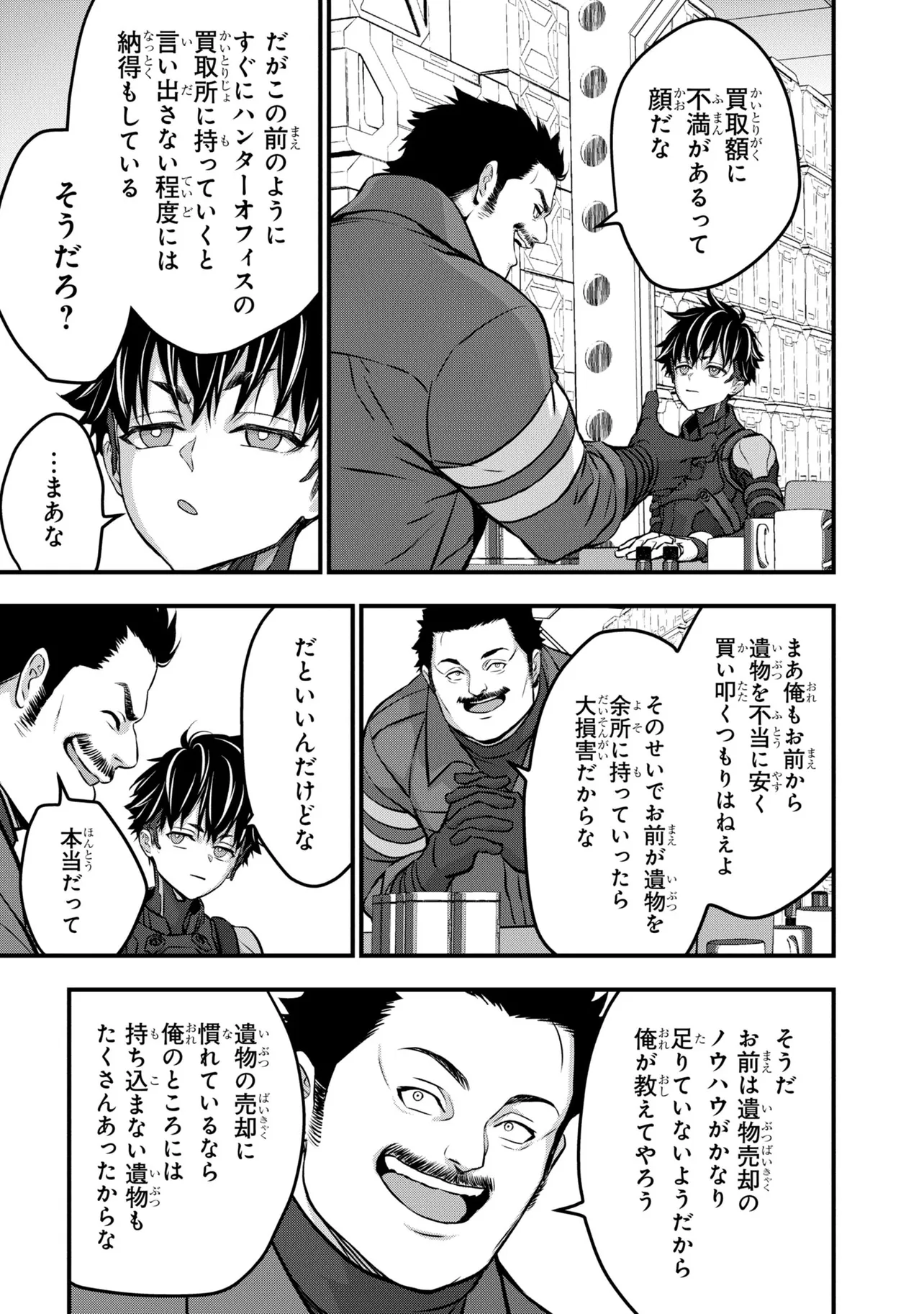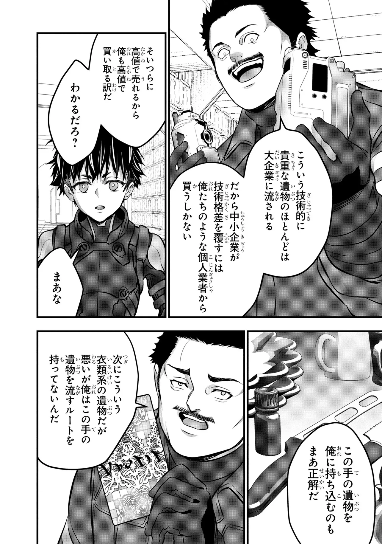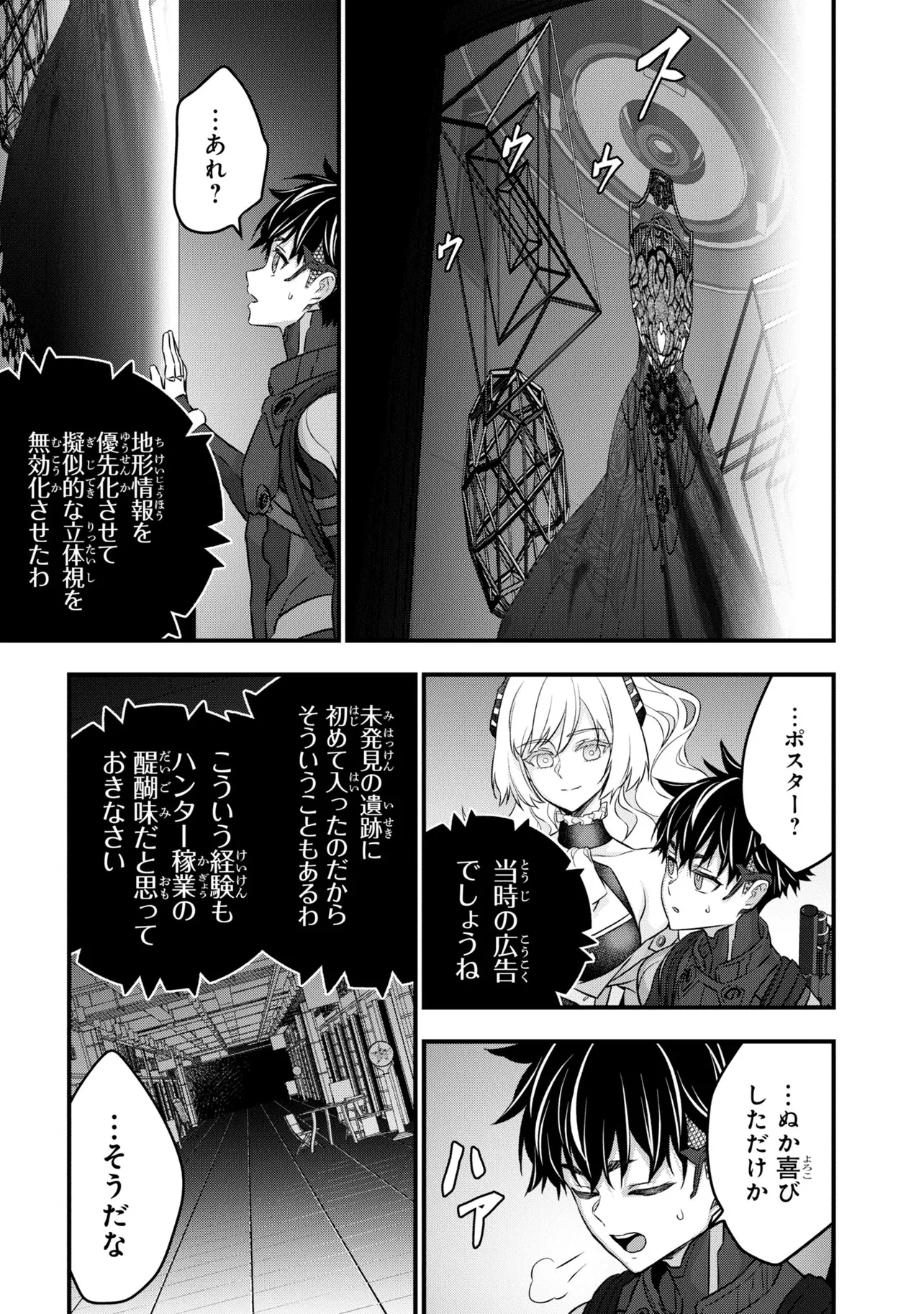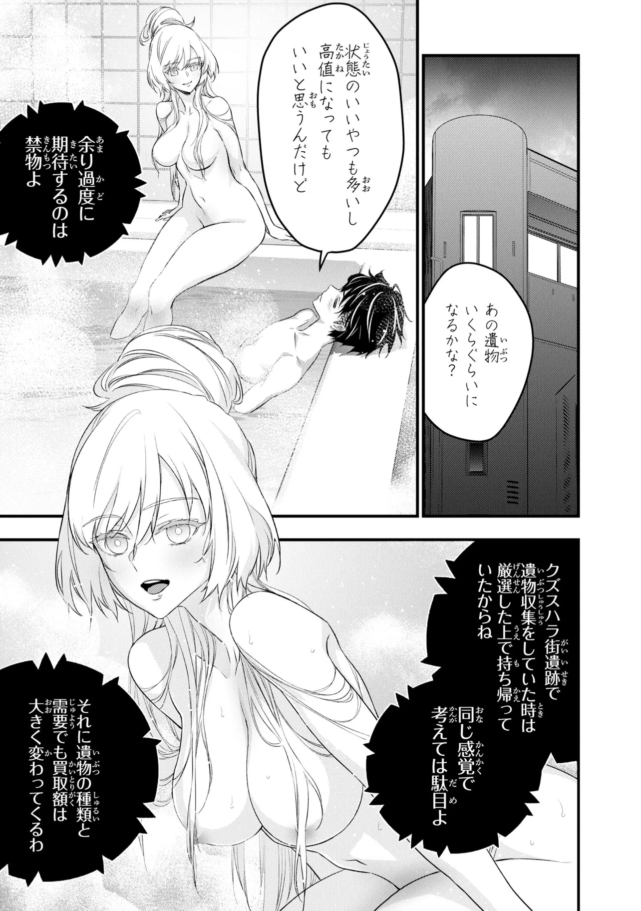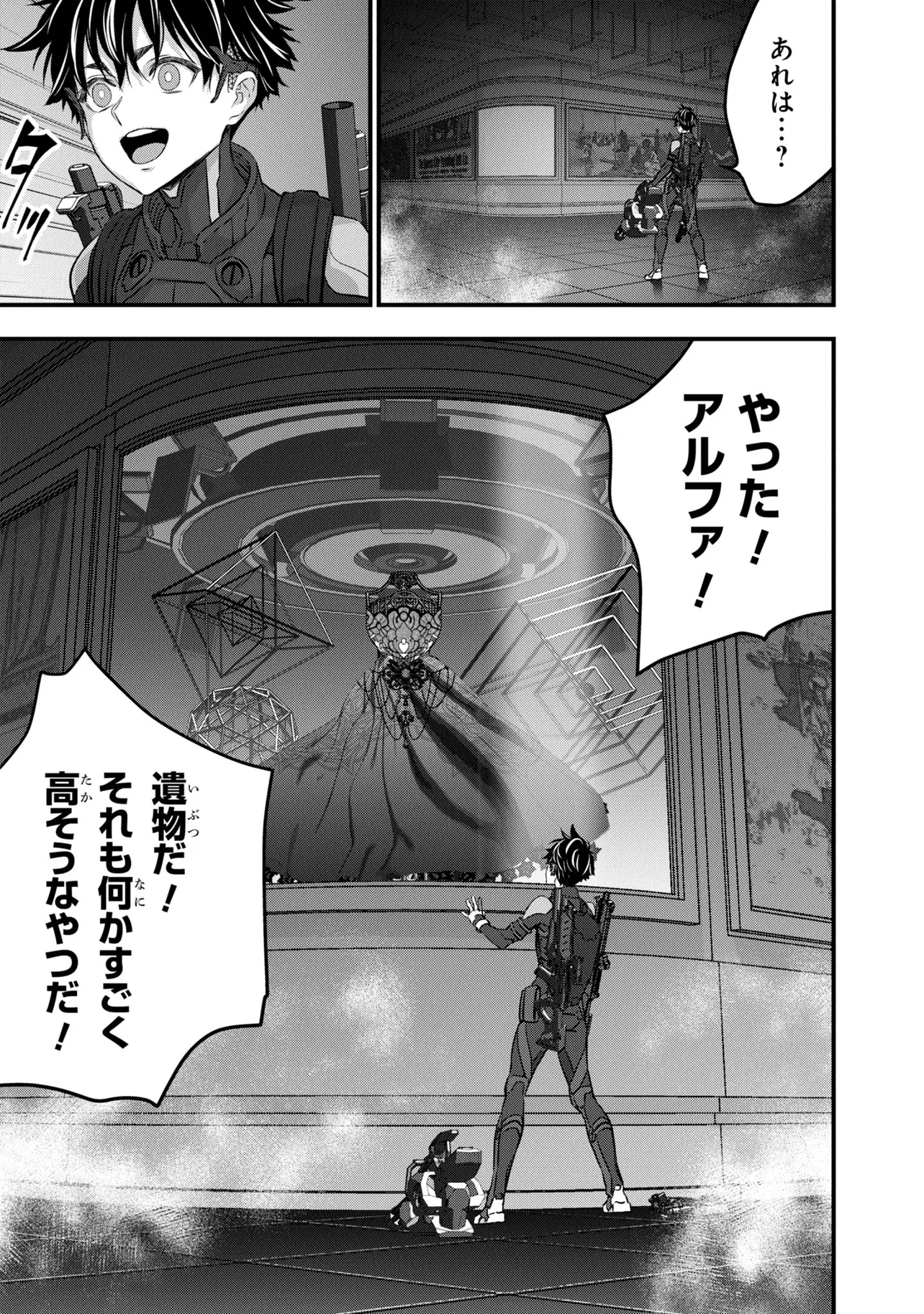電撃《新文芸》スタートアップコンテスト大賞受賞作が早くもコミカライズ! 旧文明の遺産を求め、数多の遺跡にハンターがひしめき合う世界。新米ハンター・アキラはスラム街から成り上がるために踏み入れた旧世界の遺跡で、全裸でたたずむ謎の美女・アルファと出会う――。