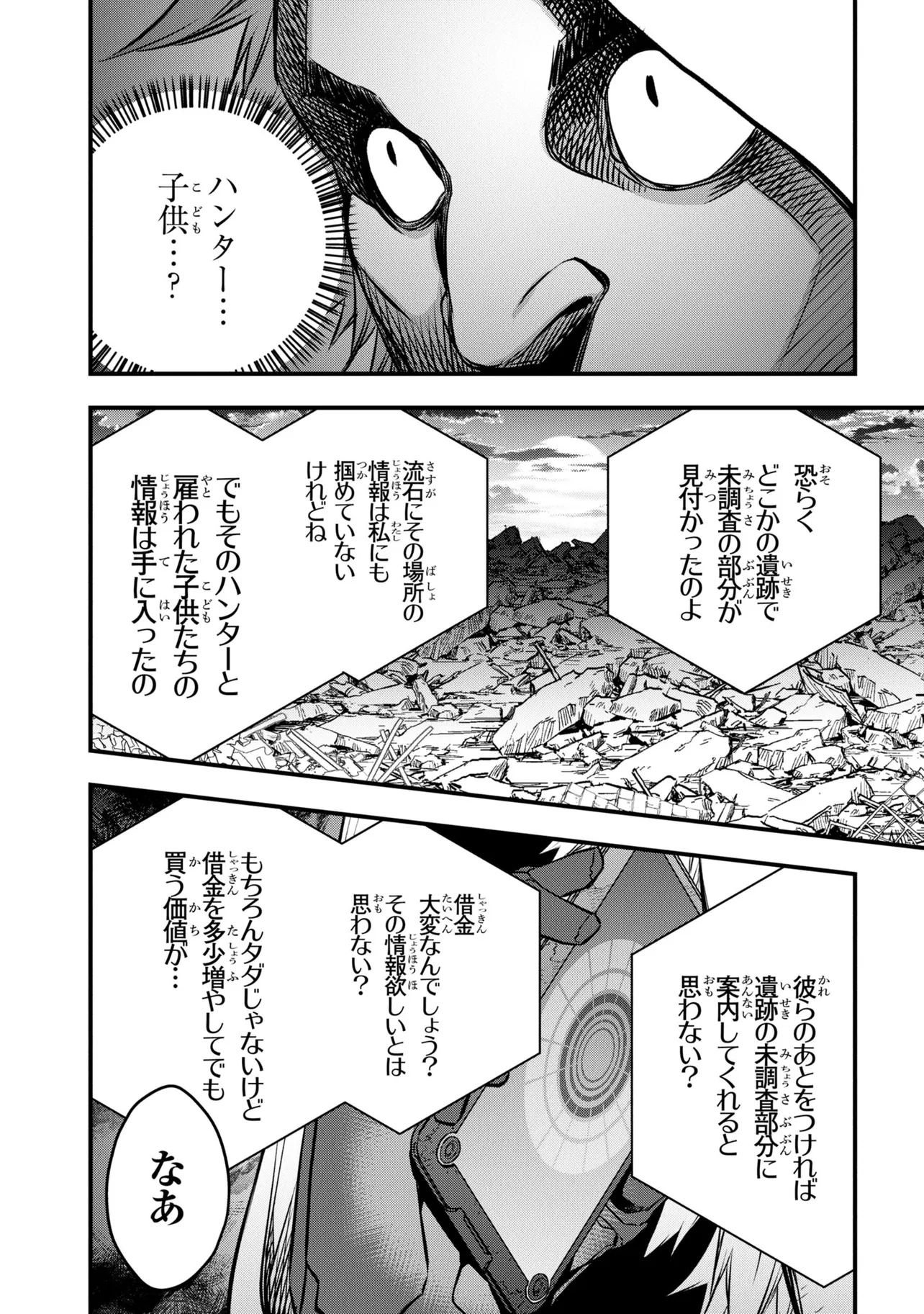 電撃《新文芸》スタートアップコンテスト大賞受賞作が早くもコミカライズ! 旧文明の遺産を求め、数多の遺跡にハンターがひしめき合う世界。新米ハンター・アキラはスラム街から成り上がるために踏み入れた旧世界の遺跡で、全裸でたたずむ謎の美女・アルファと出会う――。