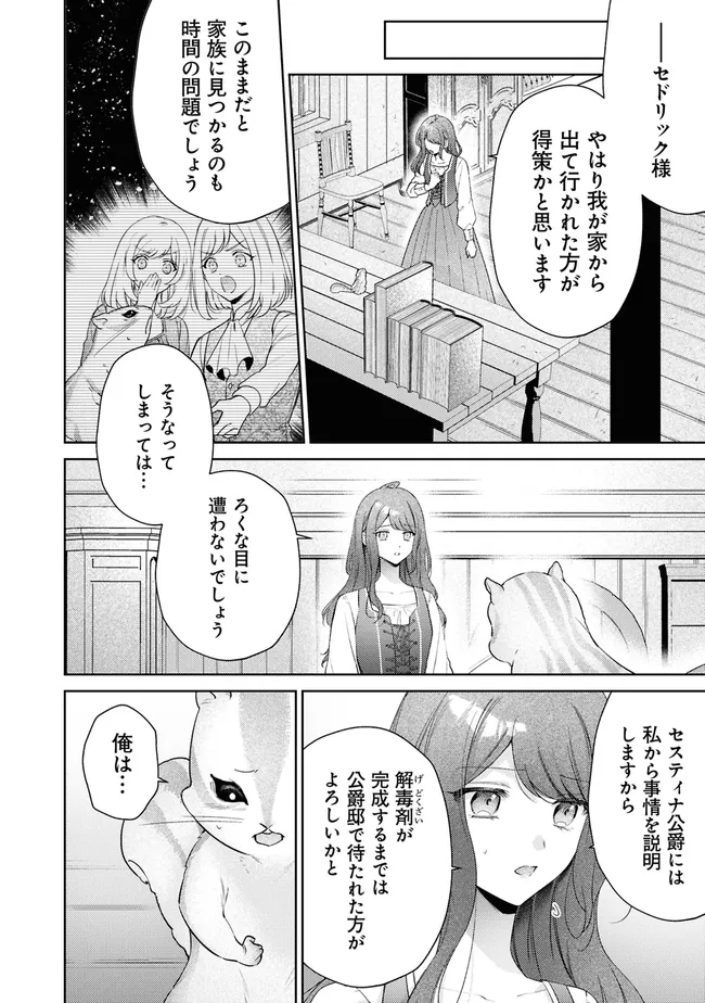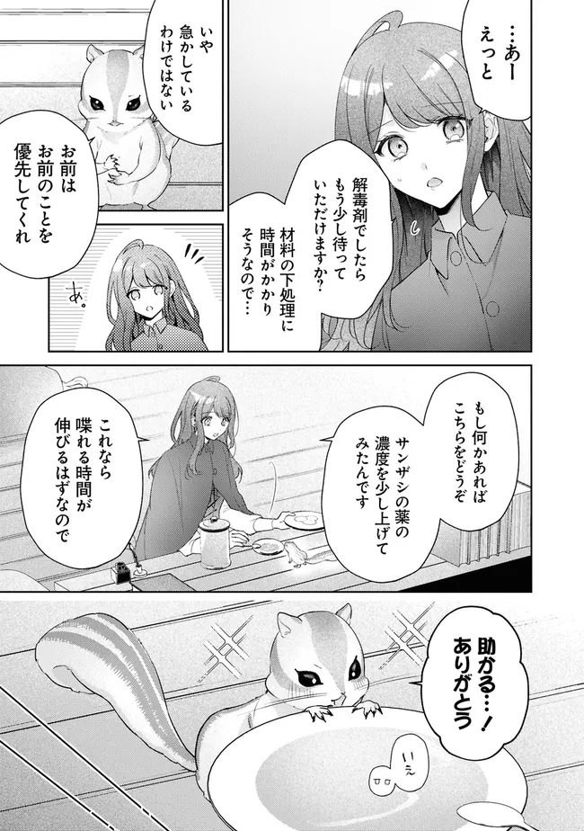 家族に虐げられ、婚約者・セドリックには愛想のない女と嫌われてきたアメリア伯爵令嬢。 大好きな薬師の仕事で心を支えられる日常を送っているアメリアを尋ねてきたのは…… 何者かに毒を盛られてリスの姿になったセドリックだった!?  「どうかこの部屋に置いてくれ」と口うるさい、 もふもふ婚約者(リス)との奇妙な同居が始まる――!