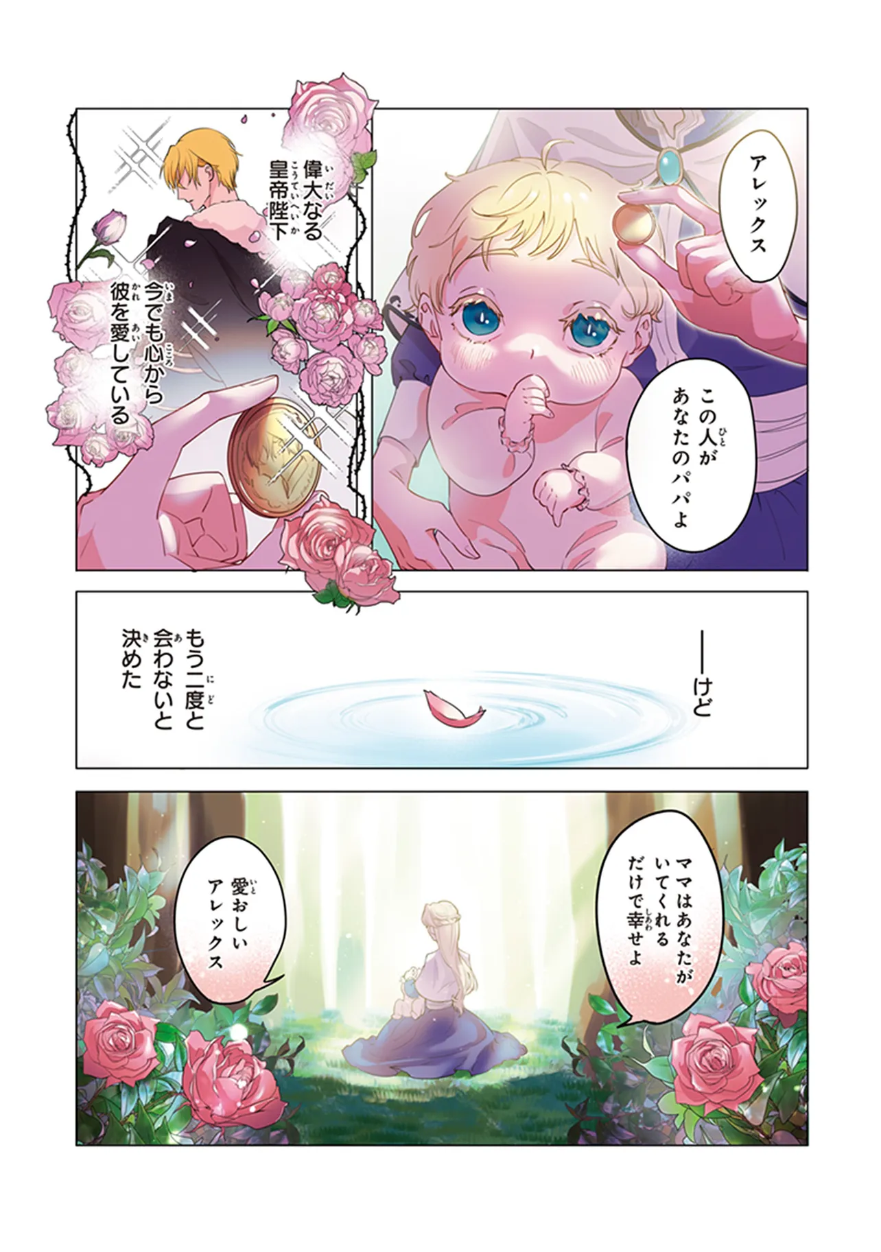 “ロイヤル・シンデレラ・ママ 天涯孤独の没落令嬢は冷徹皇帝に溺愛される” Step.01 薔薇色の出会い