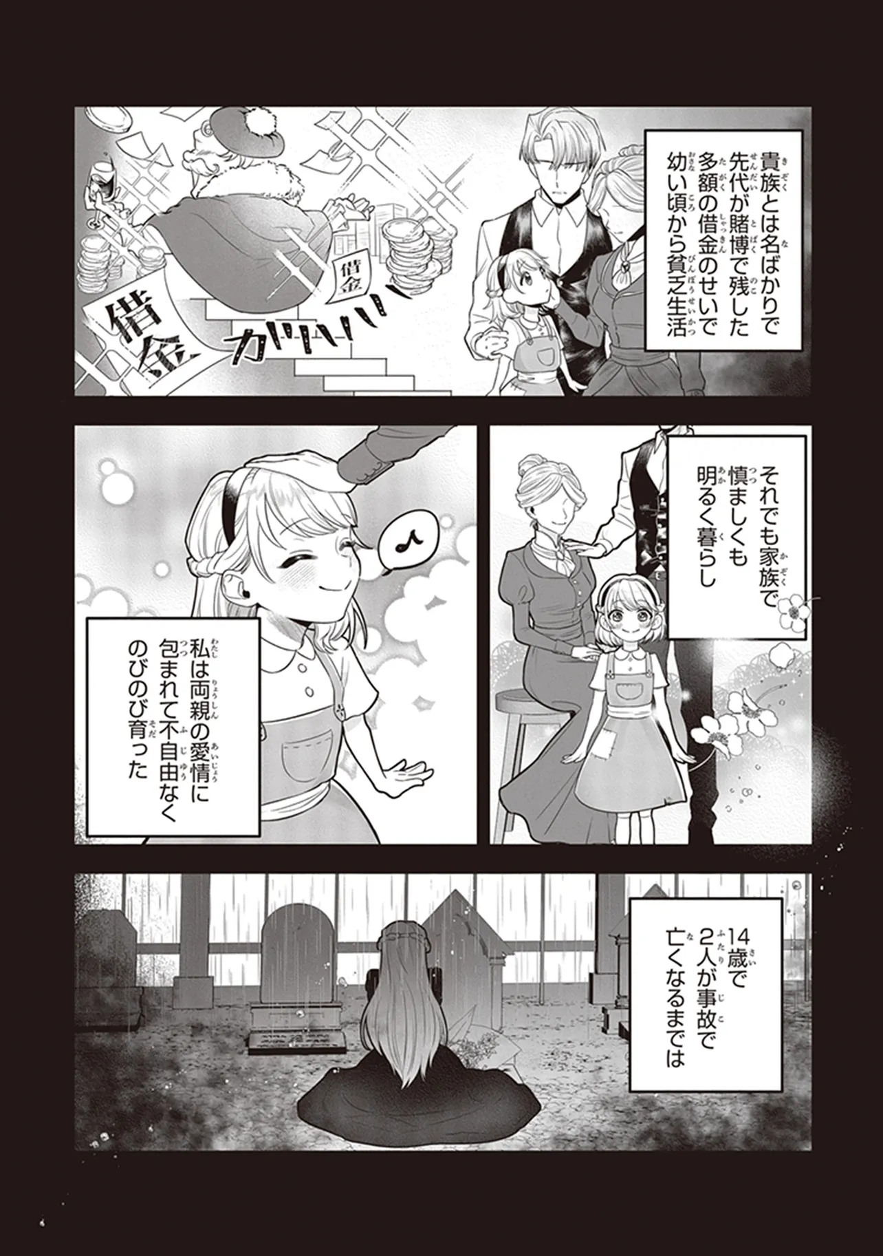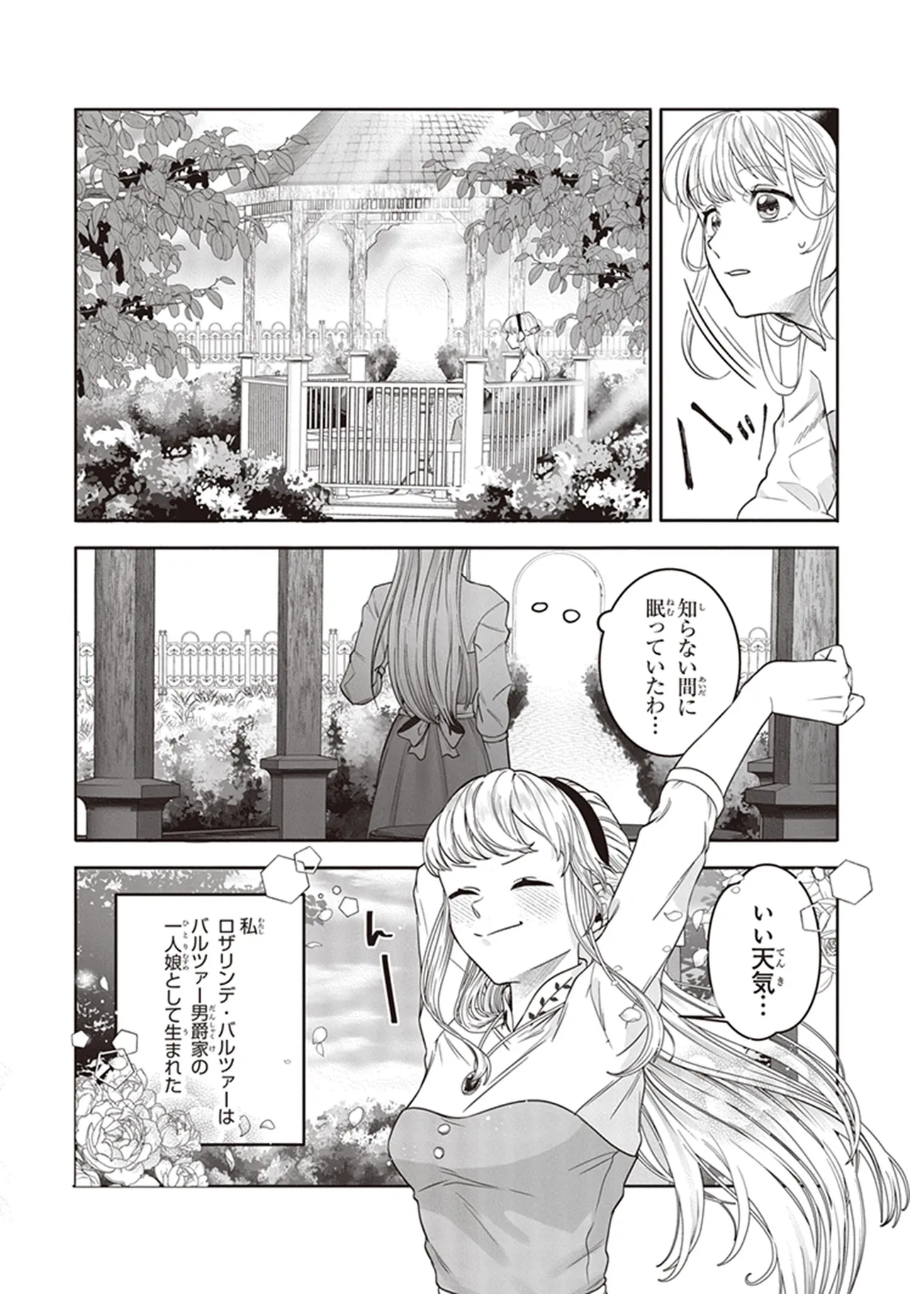 バルツァー男爵家の一人娘として生まれたロザリンデ・バルツァー。貴族とは名ばかりで、先代が賭博で残した多額の借金のせいで幼い頃から貧乏暮らしを強いられていたが、控えめな両親のもと、2人の愛情に包まれて不自由なくのびのび育った。
