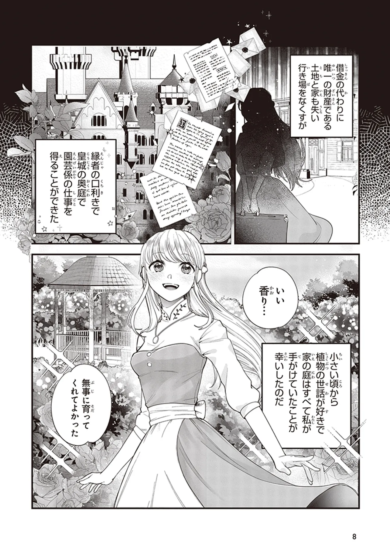 しかし、14歳の時に両親が事故で他界。借金の代わりに唯一の財産である土地と家も失い行き場をなくすが、縁者の口利きで皇城の奥庭で園芸係の仕事を得ることができた。