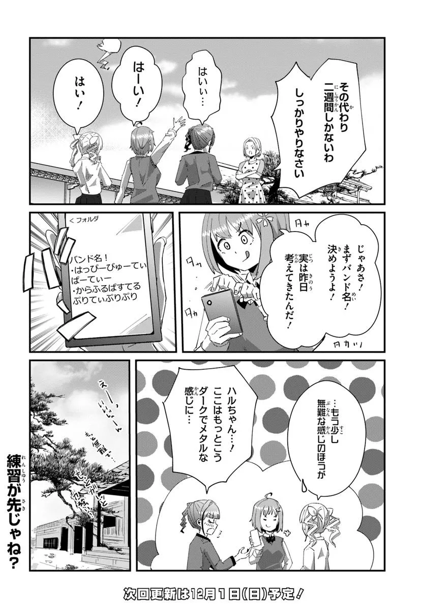 ロッキン・ソウル 第6話-2 ロッキン・ソウル 投稿者 admin - 1年 前に 幸せな読書漫画 ロッキン・ソウル 第6話-2 , いいねと共有ボタンをクリックすることを忘れないでください. Manga ロッキン・ソウル 常に更新されます 無料コミック Comic Top. 他のマンガの更新を読むことを忘れないでください。 マンガコレクションのリスト 無料コミック Comic Top マンガリストメニューにあります. お友達と共有しましょう! Facebook Twitter Pinterest Whatsapp 前のエピソード すべての章 次のエピソード リスト ページング Loading.. 前のエピソード すべての章 次のエピソード リスト ページング お友達と共有しましょう! Facebook Twitter Pinterest Whatsapp お気に入りに追加に続く 0 人 ロッキン・ソウル 承認欲求がちょっと強めな女子高生・ハルは、ある日、音楽室の倉庫で古びたギターを見つける。 少しくらいなら…と不用意に触った結果、ギターを落としてしまいキズが……? そっとギターを戻して何もなかったことにしたハルだったが、帰宅するとなぜか自分の部屋にギターがあって!? “バズり”に憧れる今どきJKハルと、ギターに“憑いていた90年代”JKアキのガールズバンドコメディ! 芽々ノ圭 ギャルクセになるほのぼの友情・仲間女主人公女子高校生(JK)学園モノ日常系百合高校生