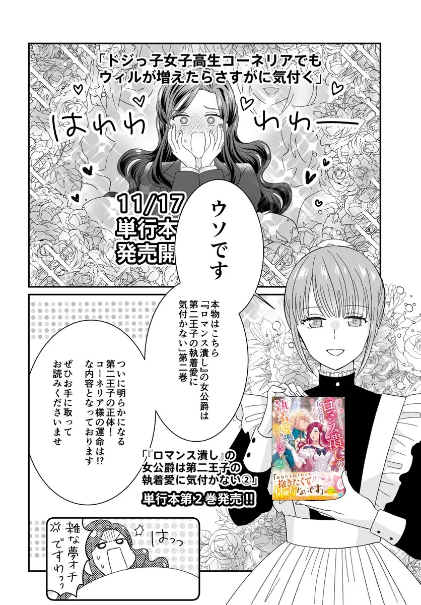 『ロマンス潰し』の女公爵は第二王子の執着愛に気付かない コミックス2巻告知