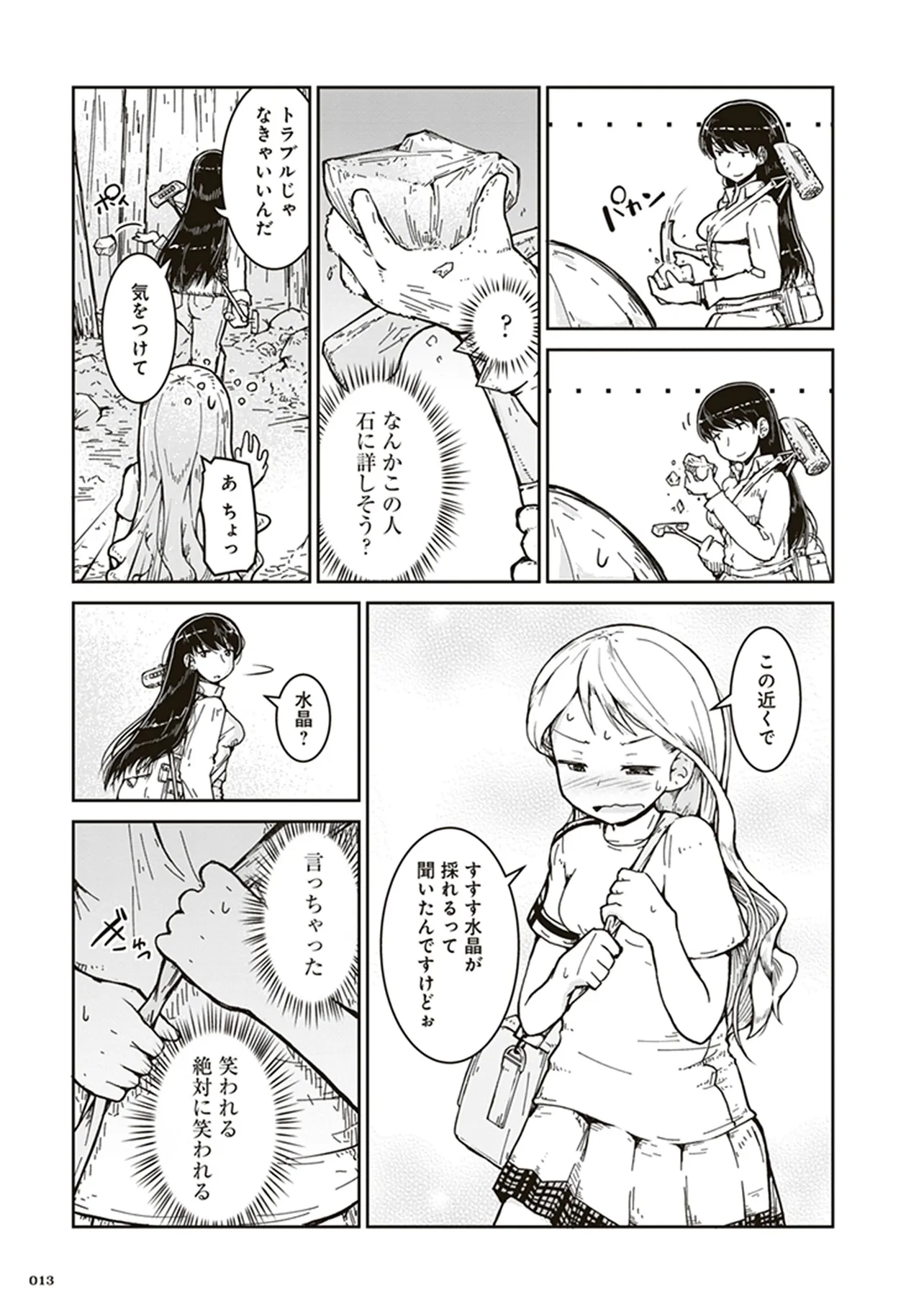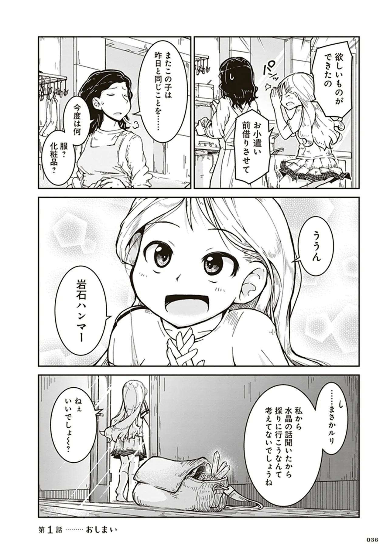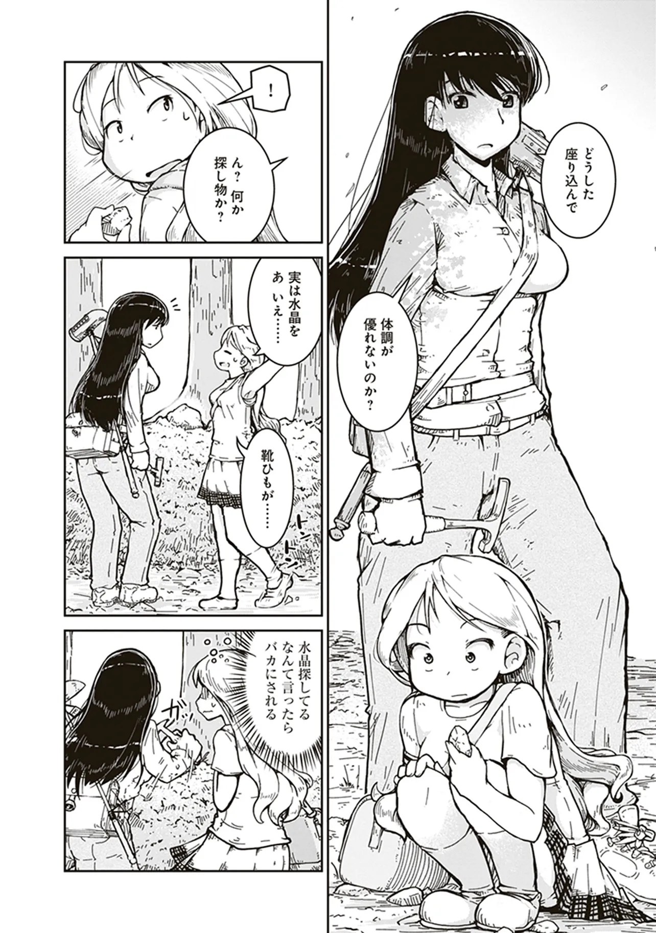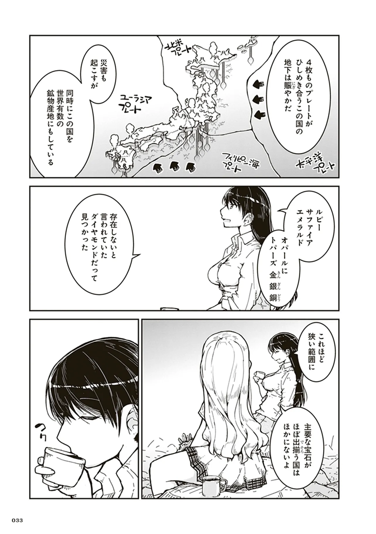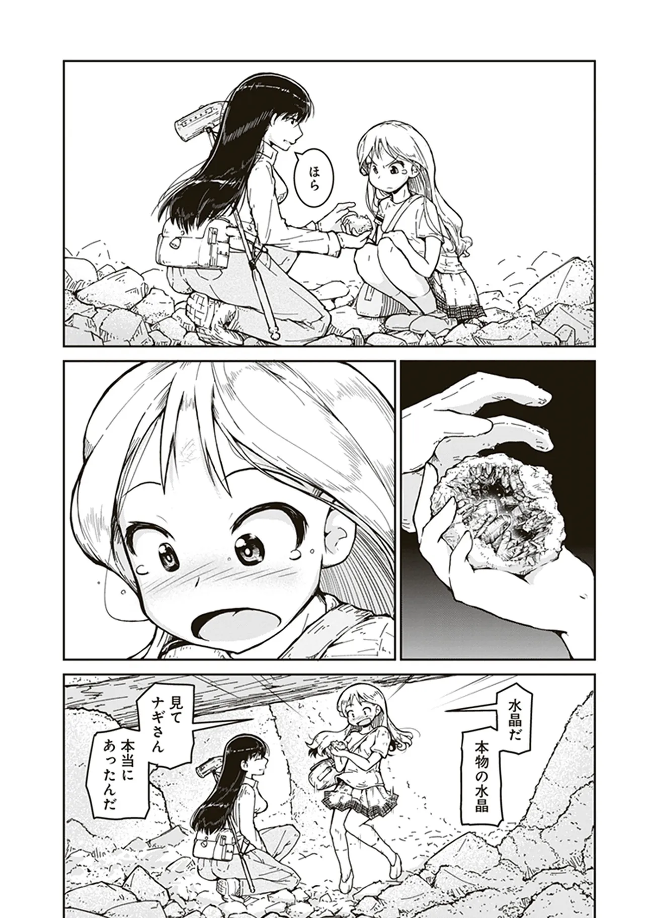 瑠璃の宝石 第1話 はじめての鉱物採集 瑠璃の宝石 投稿者 admin - 5か月 前に 幸せな読書漫画 瑠璃の宝石 第1話 はじめての鉱物採集 , いいねと共有ボタンをクリックすることを忘れないでください. Manga 瑠璃の宝石 常に更新されます 無料コミック Comic Top. 他のマンガの更新を読むことを忘れないでください。 マンガコレクションのリスト 無料コミック Comic Top マンガリストメニューにあります. お友達と共有しましょう! Facebook Twitter Pinterest Whatsapp 前のエピソード すべての章 次のエピソード リスト ページング Loading.. 前のエピソード すべての章 次のエピソード リスト ページング お友達と共有しましょう! Facebook Twitter Pinterest Whatsapp お気に入りに追加に続く 1 人 瑠璃の宝石 鉱物採集は現代の宝探しだ! 宝石やアクセサリーが好きな女子高生ルリが、山へ川へ洞窟へ、鉱物採集の世界に飛び込んでいく。 第1巻では、水晶、ガーネット、黄鉄鉱、砂金、蛍石など多数の鉱物が登場します。 パニング皿、ハンマー、地形図など、専門的なツールを用いた採集シーンも魅力満載。 鉱物学を修めた作者の確かな知見に基づく、本格サイエンスアドベンチャー! 渋谷圭一郎(著者) 冒険女子高生宝探し宝石鉱物青春