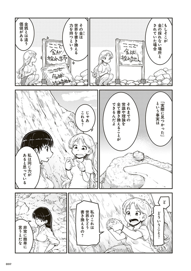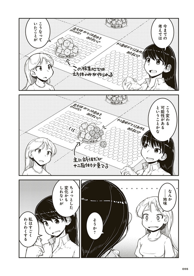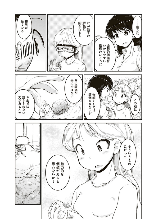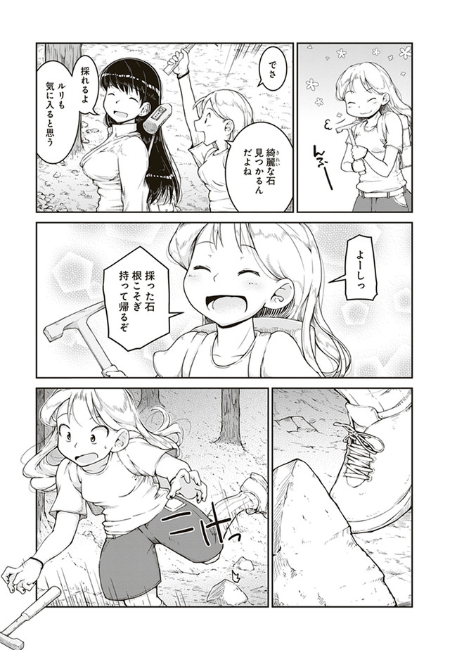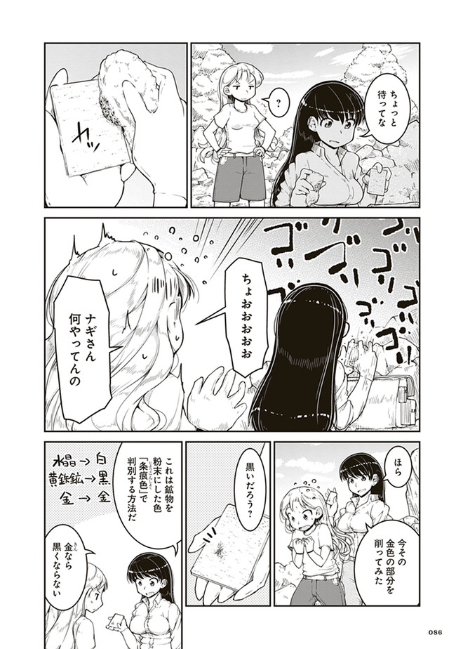 瑠璃の宝石 第3話 瑠璃の宝石 投稿者 admin - 3年 前に 幸せな読書漫画 瑠璃の宝石 第3話 , いいねと共有ボタンをクリックすることを忘れないでください. Manga 瑠璃の宝石 常に更新されます 無料コミック Comic Top. 他のマンガの更新を読むことを忘れないでください。 マンガコレクションのリスト 無料コミック Comic Top マンガリストメニューにあります. お友達と共有しましょう! Facebook Twitter Pinterest Whatsapp 前のエピソード すべての章 次のエピソード リスト ページング Loading.. 前のエピソード すべての章 次のエピソード リスト ページング お友達と共有しましょう! Facebook Twitter Pinterest Whatsapp お気に入りに追加に続く 1 人 瑠璃の宝石 鉱物採集は現代の宝探しだ! 宝石やアクセサリーが好きな女子高生ルリが、山へ川へ洞窟へ、鉱物採集の世界に飛び込んでいく。 第1巻では、水晶、ガーネット、黄鉄鉱、砂金、蛍石など多数の鉱物が登場します。 パニング皿、ハンマー、地形図など、専門的なツールを用いた採集シーンも魅力満載。 鉱物学を修めた作者の確かな知見に基づく、本格サイエンスアドベンチャー! 渋谷圭一郎(著者) 冒険女子高生宝探し宝石鉱物青春