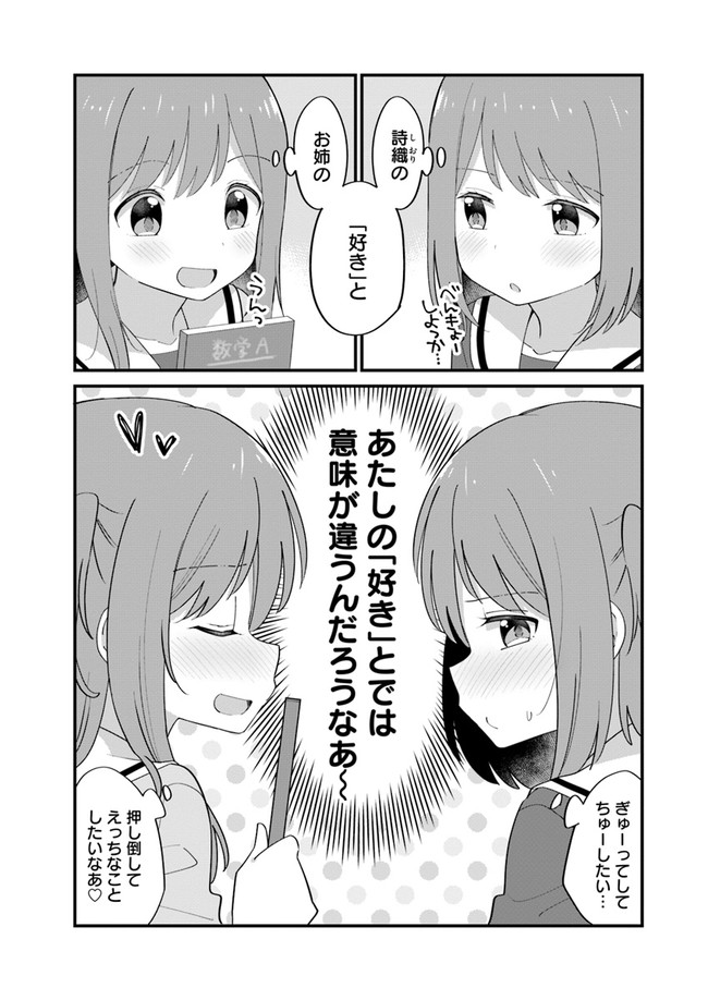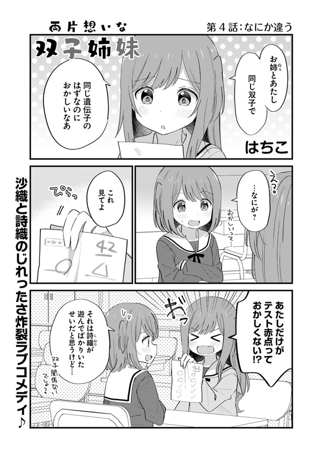 両片想いな双子姉妹 第4話 「なにか違う」 両片想いな双子姉妹 投稿者 admin - 4年 前に 幸せな読書漫画 両片想いな双子姉妹 第4話 「なにか違う」 , いいねと共有ボタンをクリックすることを忘れないでください. Manga 両片想いな双子姉妹 常に更新されます 無料コミック Comic Top. 他のマンガの更新を読むことを忘れないでください。 マンガコレクションのリスト 無料コミック Comic Top マンガリストメニューにあります. お友達と共有しましょう! Facebook Twitter Pinterest Whatsapp 前のエピソード すべての章 次のエピソード リスト ページング Loading.. 前のエピソード すべての章 次のエピソード リスト ページング お友達と共有しましょう! Facebook Twitter Pinterest Whatsapp お気に入りに追加に続く 2 人 両片想いな双子姉妹 沙織(さおり)と詩織(しおり)は双子の姉妹。 お互い相手のことが大好きだけど、 お互い自分の片想いだと思いこんでいて!? 「百合百景」「百合もよう」のはちこが描く、 ガールズもどかしラブコメディ! はちこ(著者) forgirlsショート女性向け姉妹恋愛百合