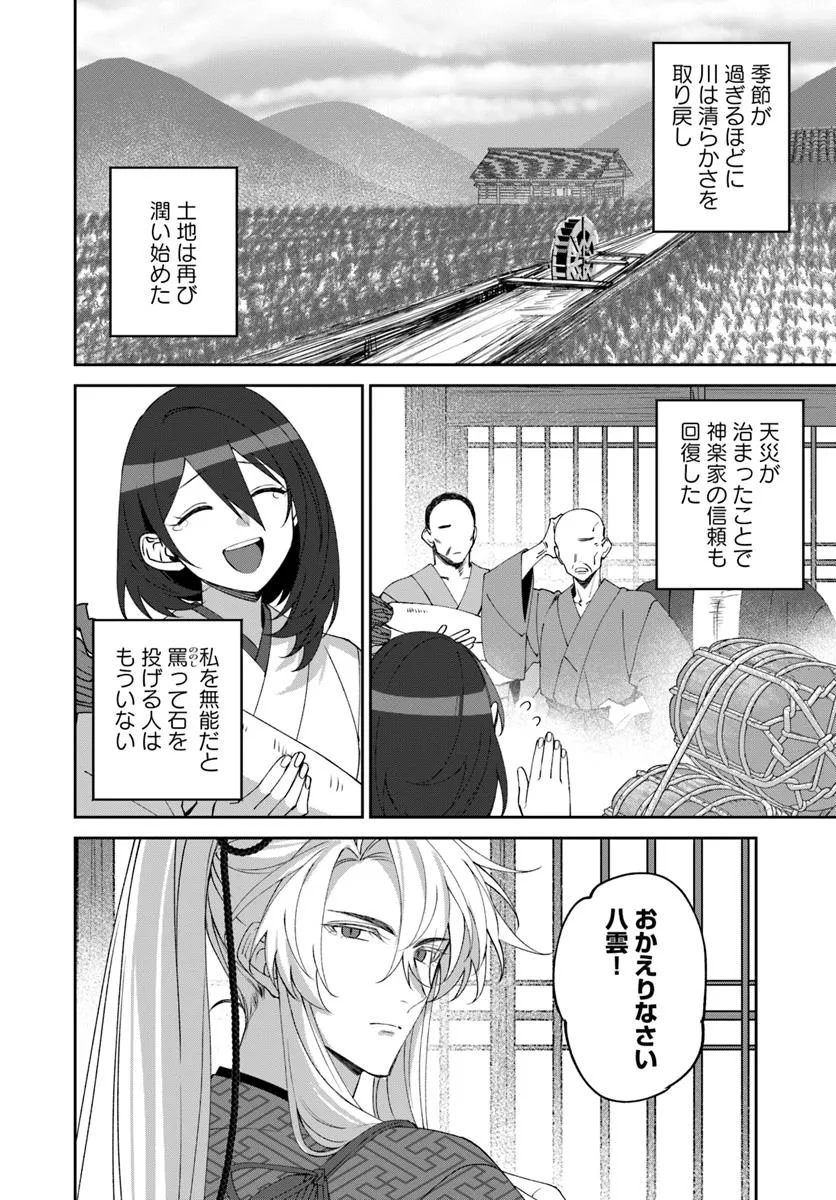 神様×人間の恋が世界の運命を変える、和風冒険ファンタジー。 ここは八百万の神々が治める世界。 巫女の神楽雅は、ある日、不思議な烏に導かれて一本の大樹に辿り着く。 そこにいたのは白く美しい姿をした竜神・八雲。彼は雅を見るなりこう告げた。 「――お前を待っていた」 運命的な出会いを果たした雅と八雲は、やがて国中の神々を救済する旅に出る。 そこで二人を待ち受けているものとは――。