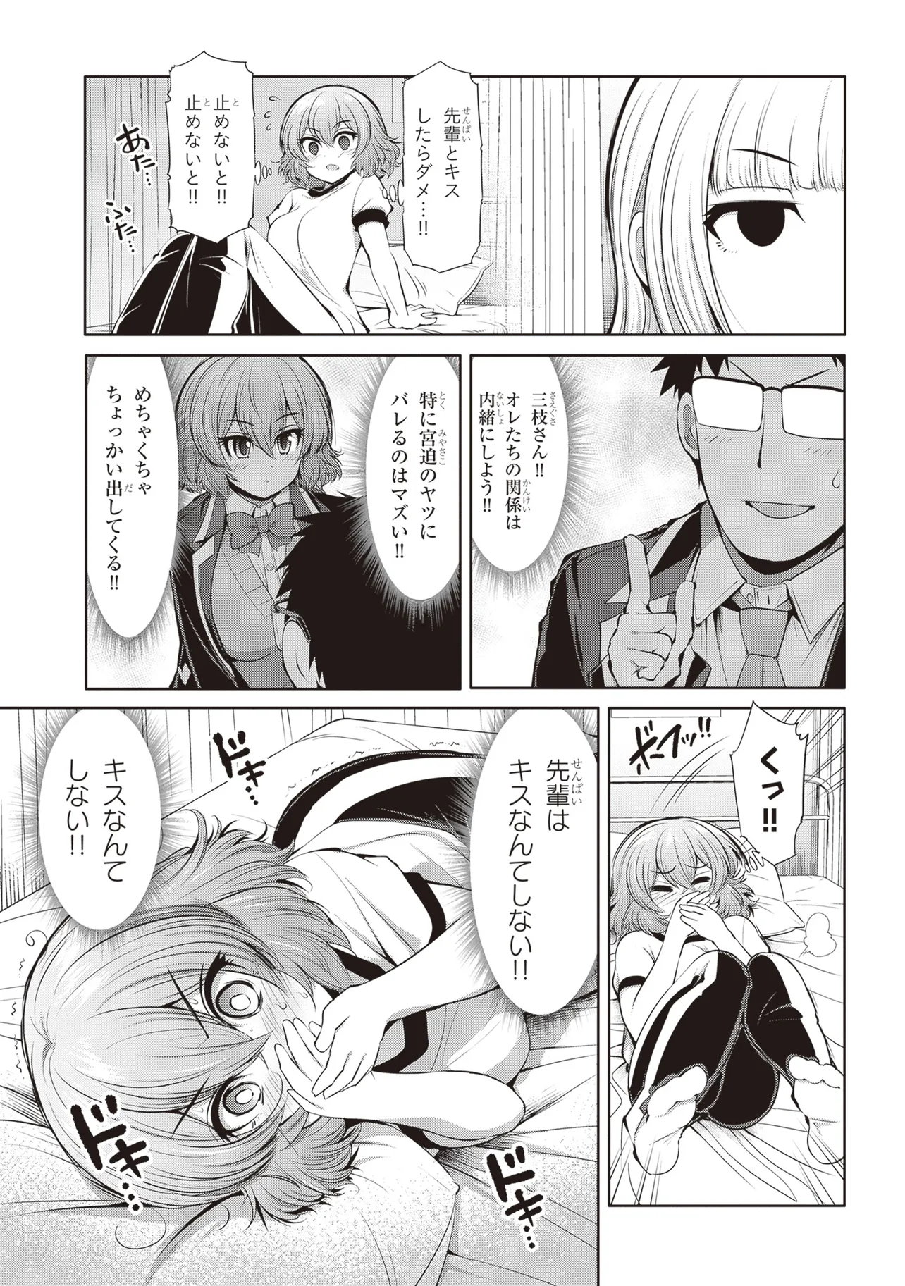 一方メガネ先輩は三枝さんの無自覚SE●アピールに悶々しっぱなし。三枝さんも初彼なら、メガネ先輩も初彼女。どこまで手を出していいか分からず、戸惑うばかり!! 果たして、二人の恋はの行方は――!!?