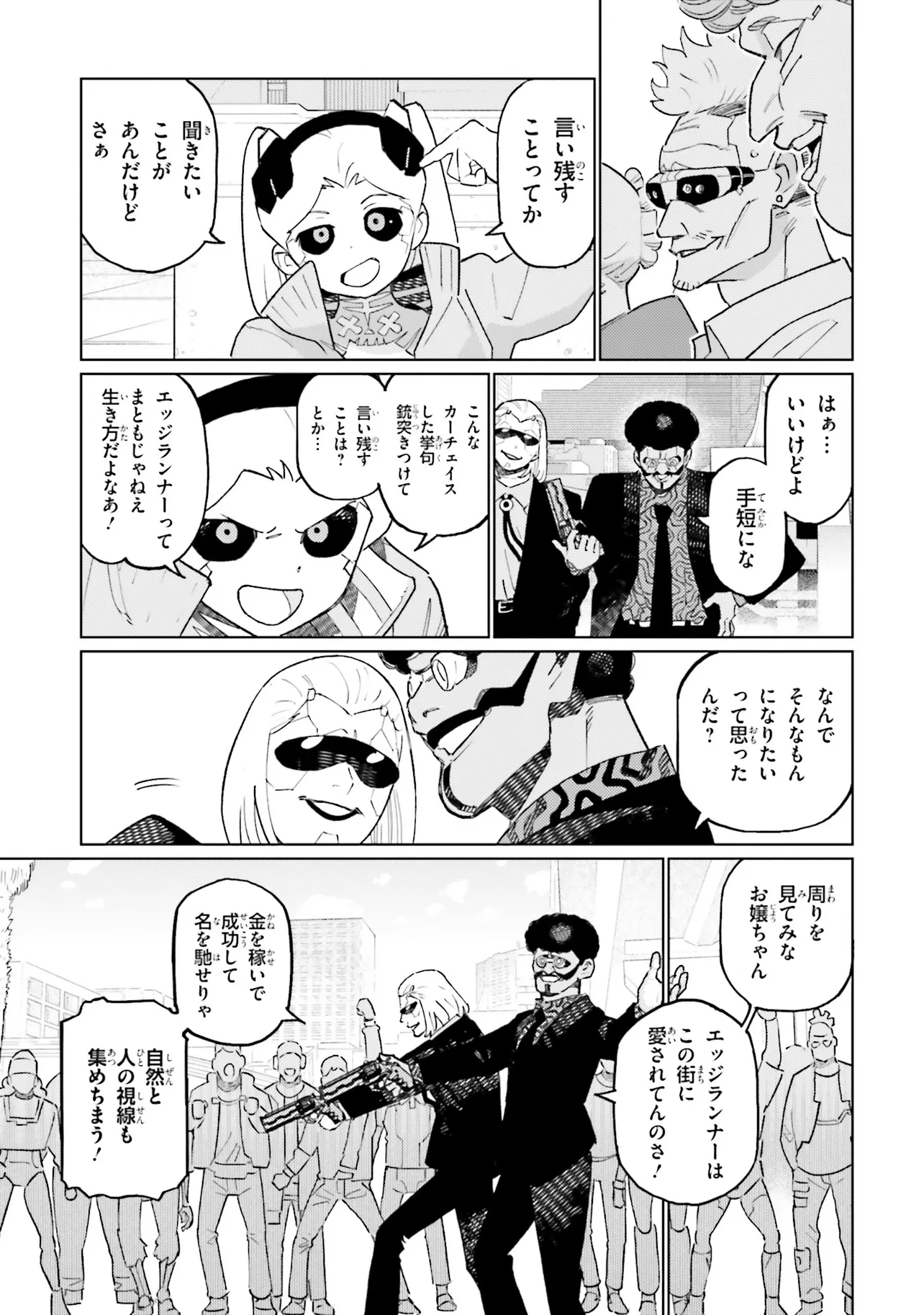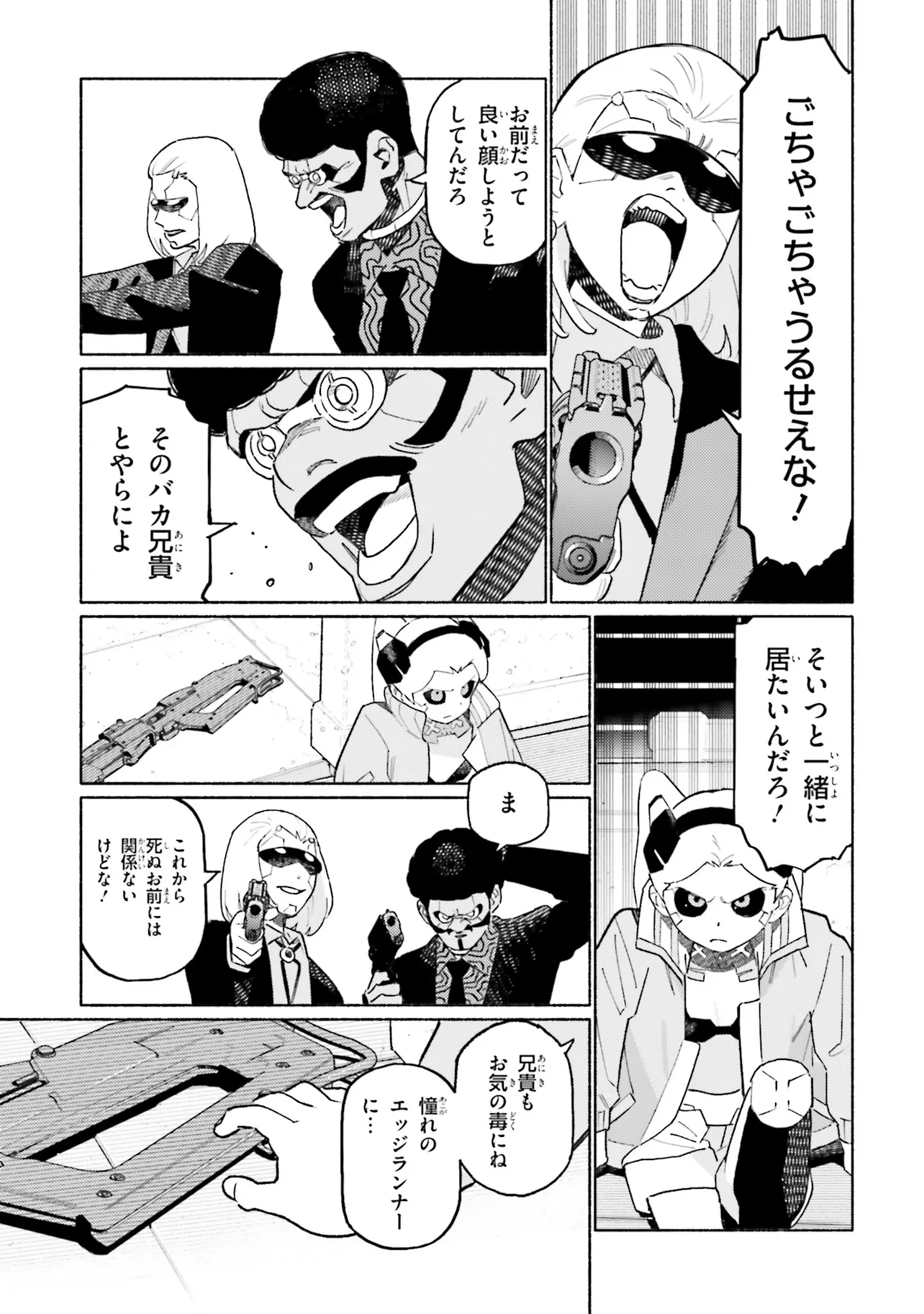 全世界必見!!アニメ『サイバーパンク: エッジランナーズ』前日譚 ピラル&レベッカ兄妹のオリジナルコミカライズが始動──! これは、エッジランナーとして名を残すためにナイトシティを駆け抜ける、 若き兄妹のMADNESS(狂気の)ストーリー! 世界中のファンの心を鷲掴みにしたアニメ『サイバーパンク: エッジランナーズ』 中でも過激な言動と、キュート&クールなルックで高い人気を誇る、 レベッカとその兄ピラル。 いつでもどこでもトラブルばかり起こす彼らにも 幼い頃から目指すものがあった…。 それは、父親のような伝説的な「エッジランナー」になること── テクノロジーと人体改造が一般化した巨大都市“ナイトシティ”で 彼らは必死にもがき、苦しみ、そして破壊する…! そんな彼らの日常に、突如現れる謎の男“サフラン”とは…? これは、エッジランナーとして名を残すためにナイトシティを駆け抜ける、 若きピラル&レベッカ兄妹のMADNESS(狂気の)ストーリー! *   *   * アニメ『サイバーパンク: エッジランナーズ』のスクリーンストーリーを担当したバルトシュ・シュティボルが原作となる完全オリジナルストーリーを書き起こし、アニメ『BNA』コミカライズ あさのが漫画化。 ■『サイバーパンク: エッジランナーズ』作品情報 『サイバーパンク: エッジランナーズ』とは、CD PROJEKT REDと、アニメーションスタジオTRIGGERとのコラボレーションによって生まれ、数多くのアワードを獲得したNetflix配信アニメ作品。舞台は、ゲーム作品『サイバーパンク2077』に登場するディストピア世界。10代の主人公、デイビッド・マルティネスは、とある悲劇をきっかけにナイトシティの裏社会に足を踏み入れる。それはアウトローの傭兵――すなわち“サイバーパンク”となる道だった。本作では、人が物理的あるいは感情的な境界を越えるために、どこまでひた走ることができるのかについて、さまざまな角度から視聴者に語り掛ける。生命が軽んじられ、欲望が支配するこの街で、名声を追い求める少年を待つ結末とは。10話シリーズ完結作品。 2023年3月には「クランチロール・アニメアワード 2023」の最高賞「アニメ・オブ・ザ・イヤー」を受賞。また、『サイバーパンク2077』を原作と
