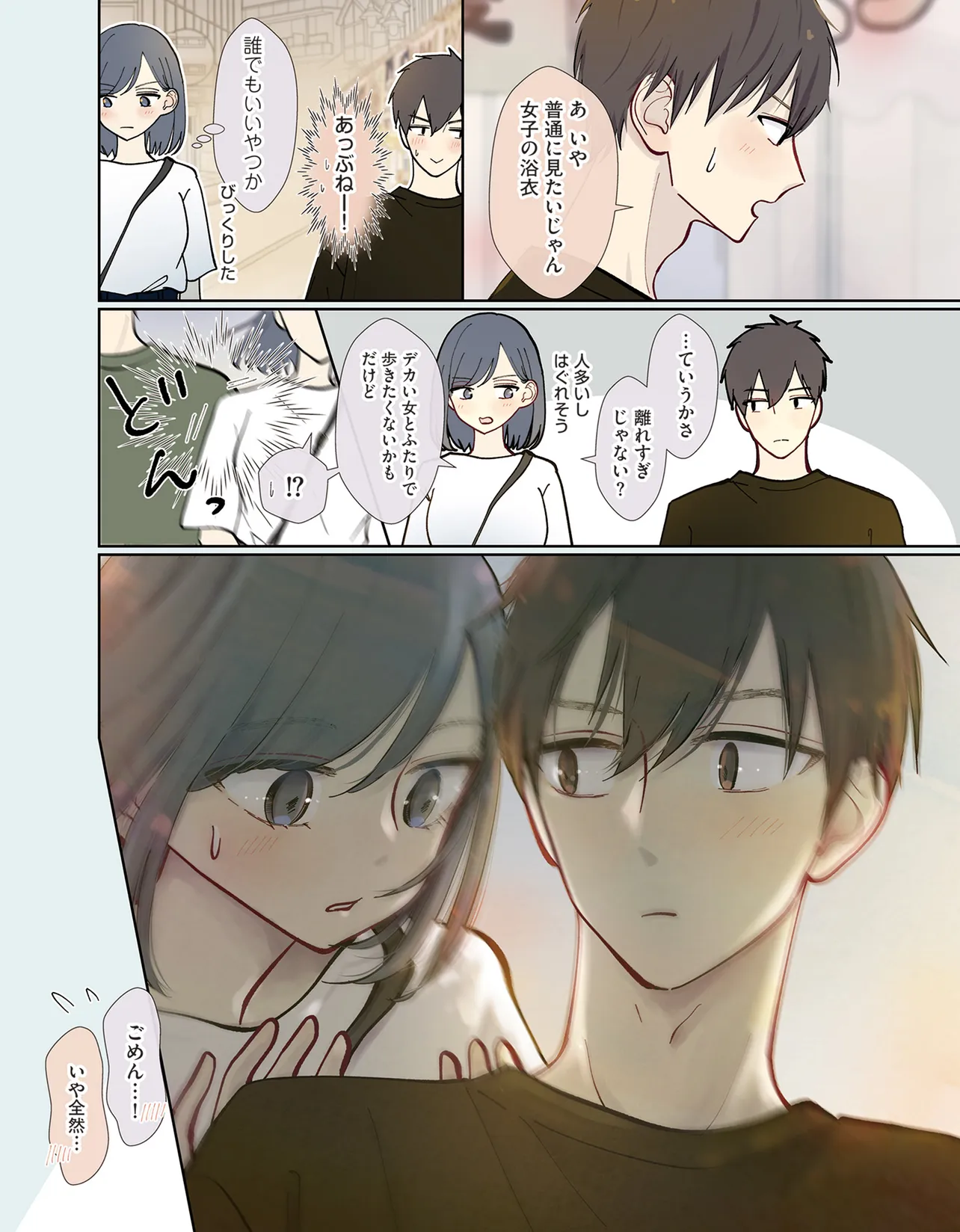 一番近くて、一番遠い。この距離がもどかしい。 == 「同じ身長だね」 「(なんだよ、同じ身長って……)」 身長が170cm以上あり、女子の中では大きいことがコンプレックスなみのり。 みのりより少し背が小さいため、大きくなりたい隼太(はやた)。 なかなか素直になれない、じれったいふたりの恋路は!? == 「それ以前に、自分に自信がない」 「(筋トレとか部活頑張って、また告白しよう)」 今は痩せているが、昔はぽっちゃりしていたため、体形にコンプレックスを感じているまゆ。 今はガッチリ体型だが、昔はヒョロガリだった周平。 もう一度、君に「好き」と言えるのはいつだろう? == 「……お隣の可愛い男の子」 「18になったよ、もう大人だよ」 隣の家に住んでいる歩のことを、“推し”のような存在だと思っているすず。 小さい頃から、一途にすずを思う歩。 「推し」ではなく「恋人」に昇格できるのか!? == 続々重版出来『2歳差の幼なじみ』の著者が描く、 SNSで話題の幼なじみラブ! 待望の書籍化!