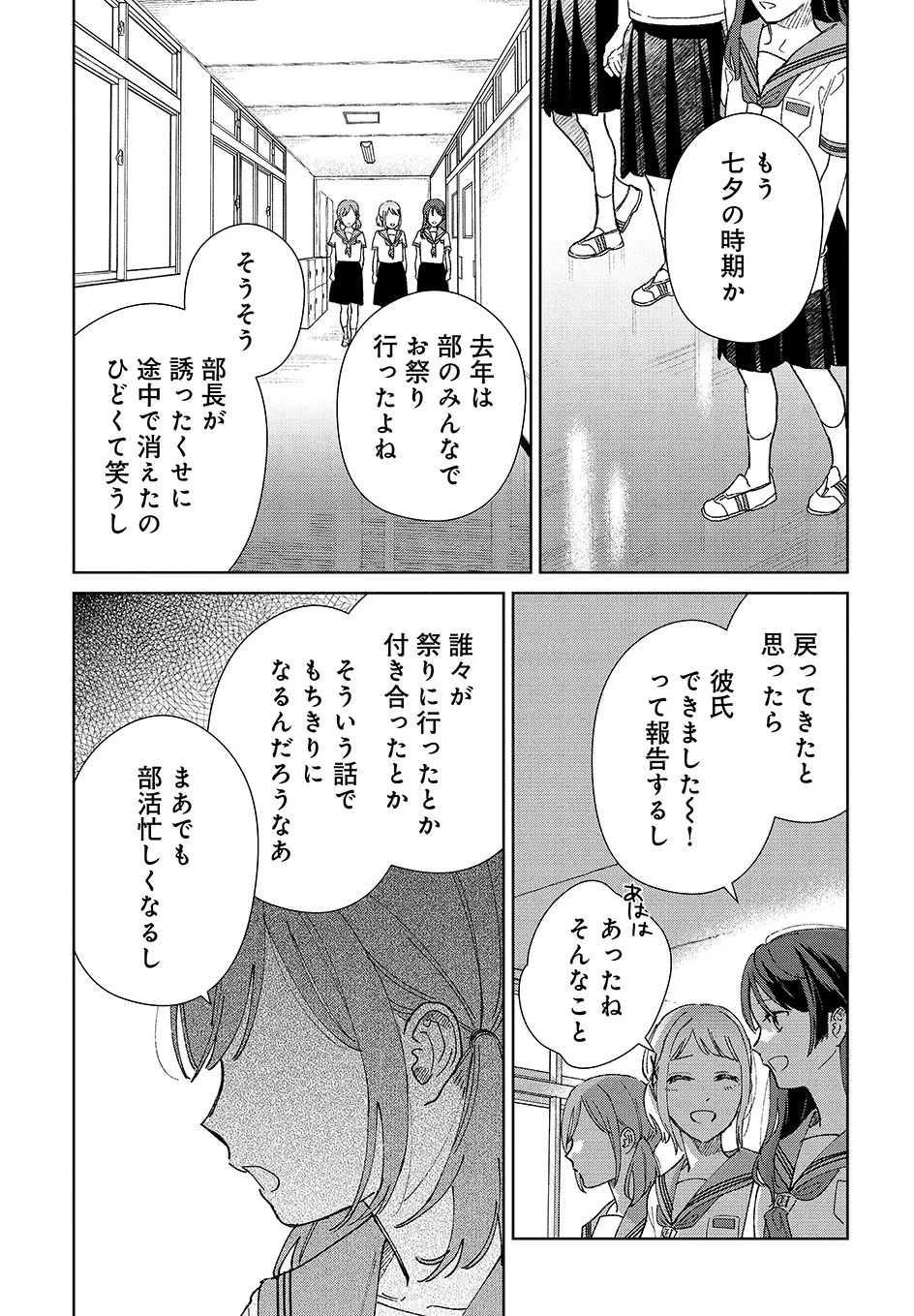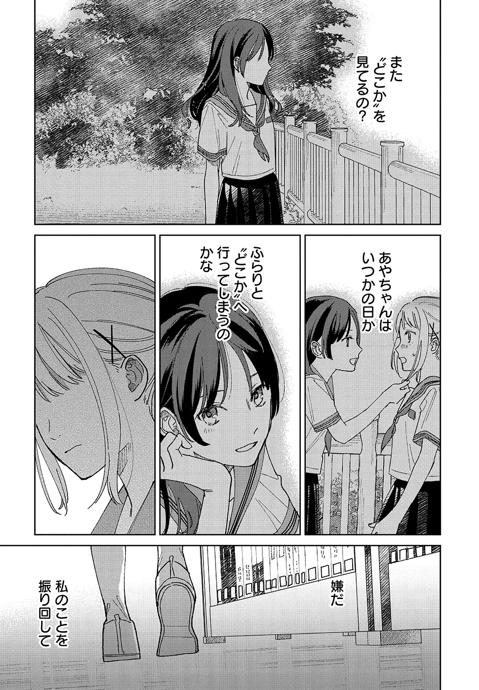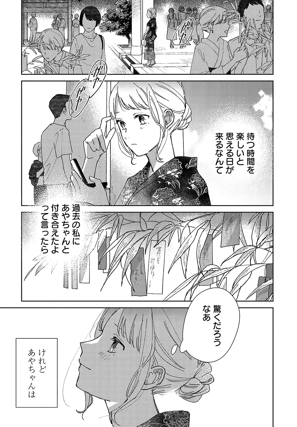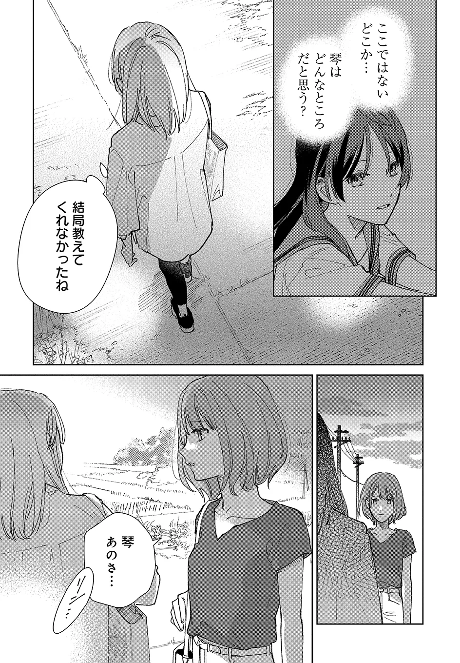 U-NEXT発の人気コミックがコミックニュータイプにも登場! 密かに思いを寄せ合っていた琴、あや、永理香の3人。琴の思いがあやに通じたのも束の間、あやは神隠しにあったかのように失踪してしまう。だが7年後、琴と永理香の前に、あやが当時の姿のままで現れて──。