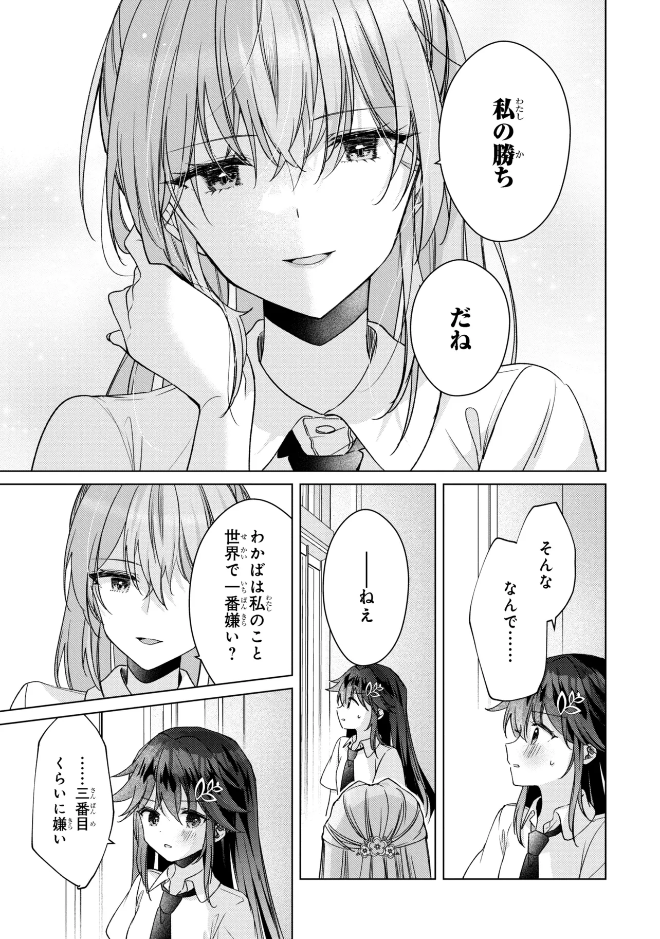 吉沢わかばの幼馴染、梅園小牧。彼女は、品行方正で才色兼備な優等生の仮面を被った、人を見下す性悪女だった。そんな小牧に奪われた尊厳を取り戻すため、彼女に勝負を挑むわかばだったが、「私が勝ったらわかばの大事なものを一つずつ奪う」という条件をつけられて――!?「嫌い」な彼女に負けるたび、曝け出されるホントの気持ち。第28回スニーカー大賞《金賞》を受賞した刺激的なガールズラブストーリーをコミック化!