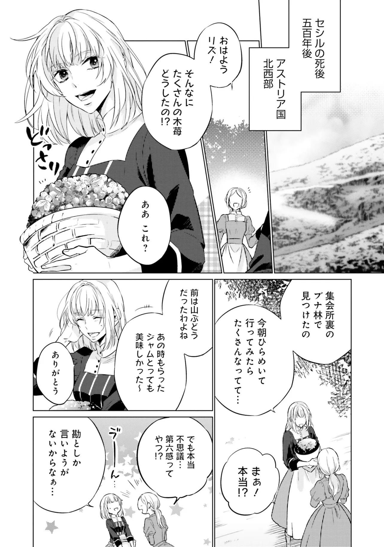 それから500年の時が経ち、リズとして生まれ変わったセシルは、前世の記憶を持ちながらも“不思議な力”に助けられながら生きていた。
