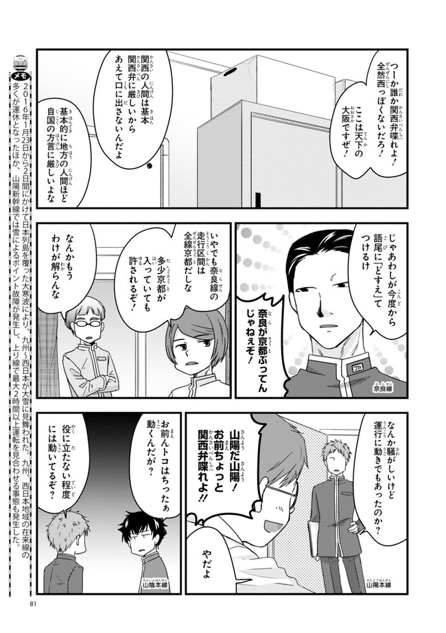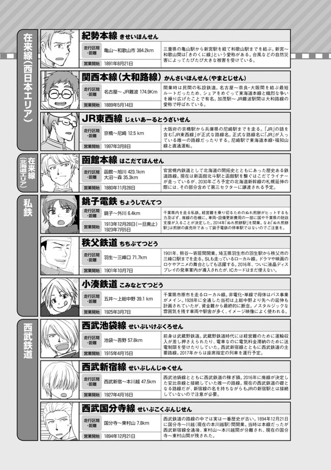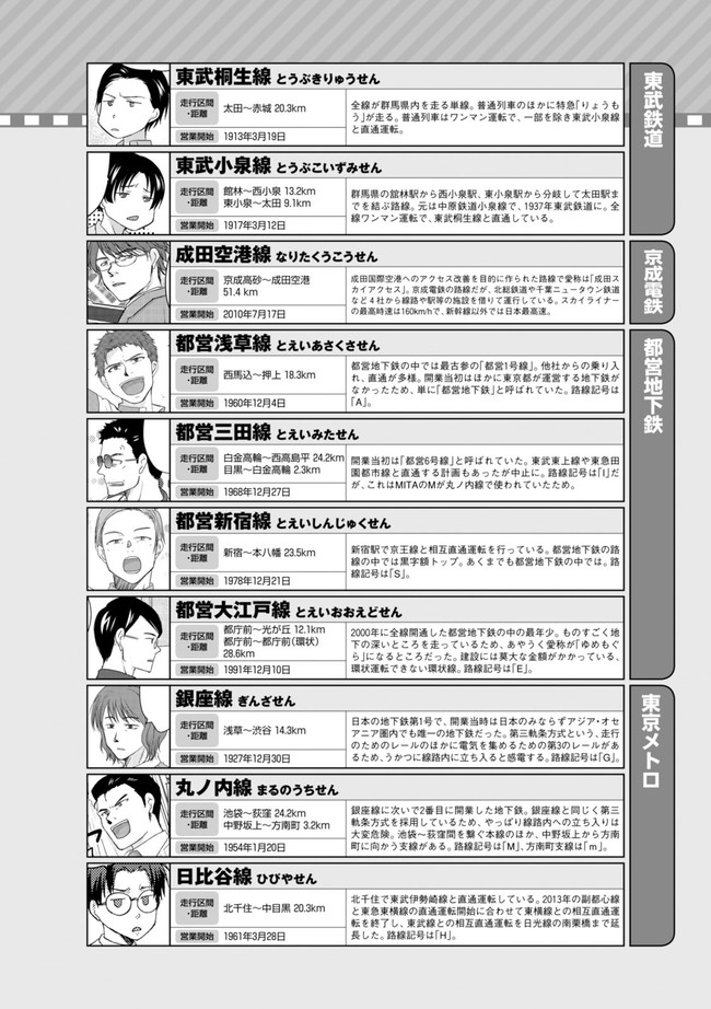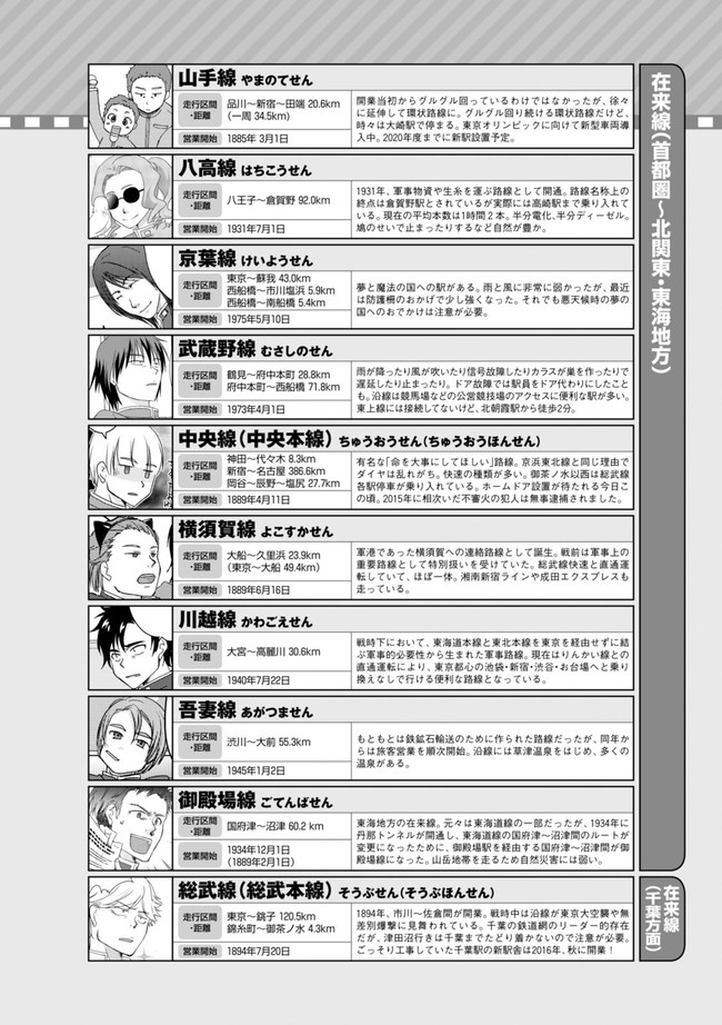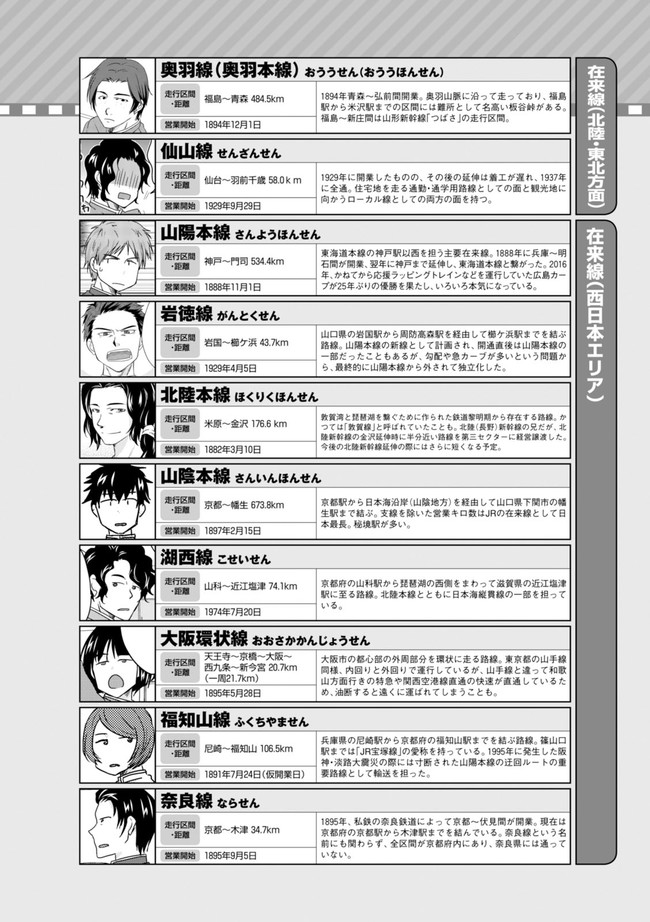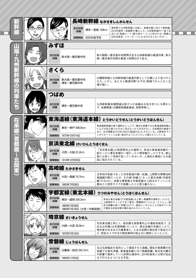 日本全国に繋がる鉄道網…そんな鉄道路線たちを擬人化した鉄道トリビアコメディ!日本一の収益を誇る東海道新幹線はものすごく金に細かかったり、超かっこいい新幹線500系を誇る山陽新幹線はイケメンなのに個性の強い路線(東海道新幹線&九州新幹線)に挟まれて不憫だったり……と、読めば妙に納得するユニークで愛すべき擬人化路線たち!首都圏中心に新潟、東北方面などの路線も含め、登場路線数は90路線以上!あなたの街の鉄道も擬人化されているかもしれませんよ?