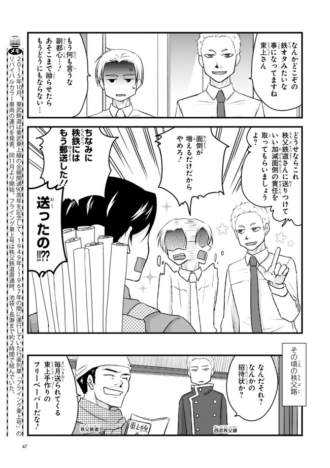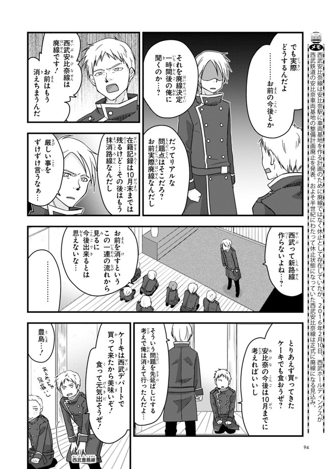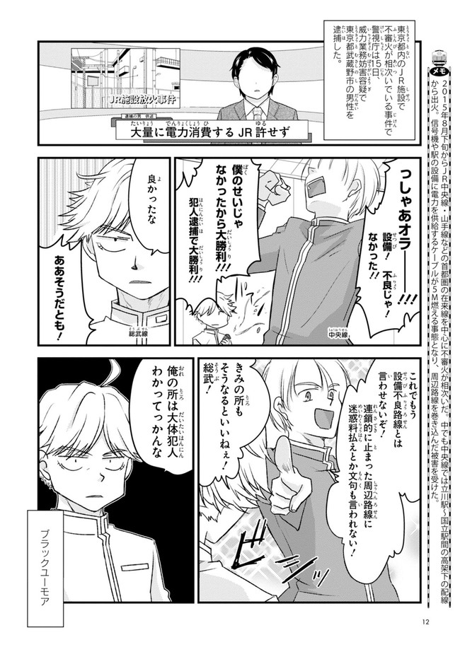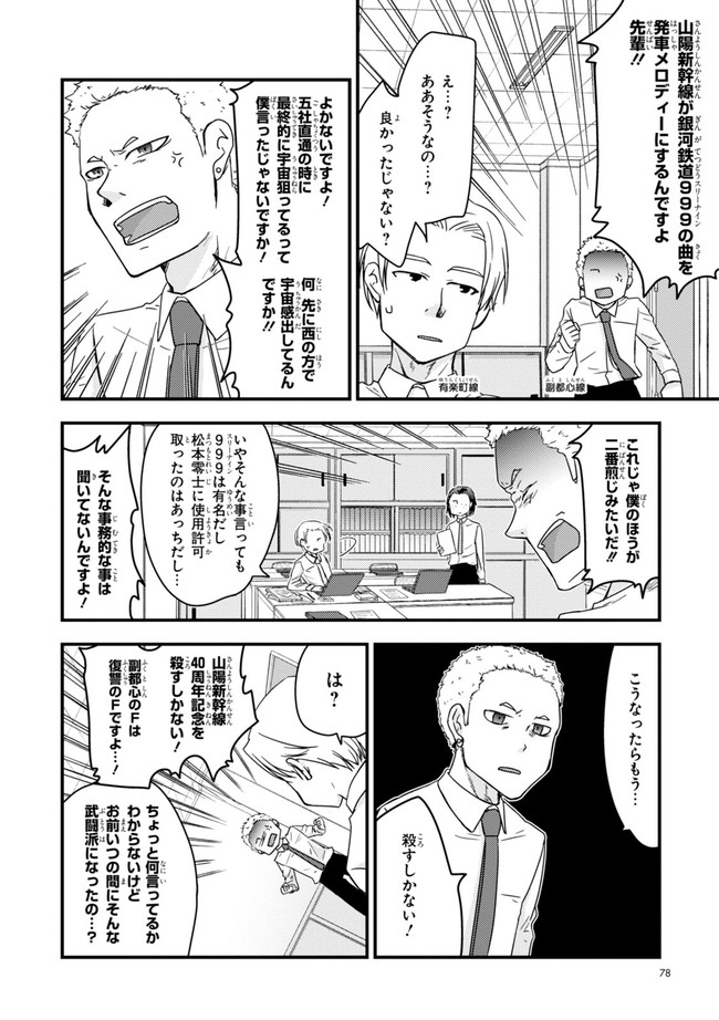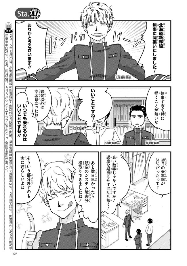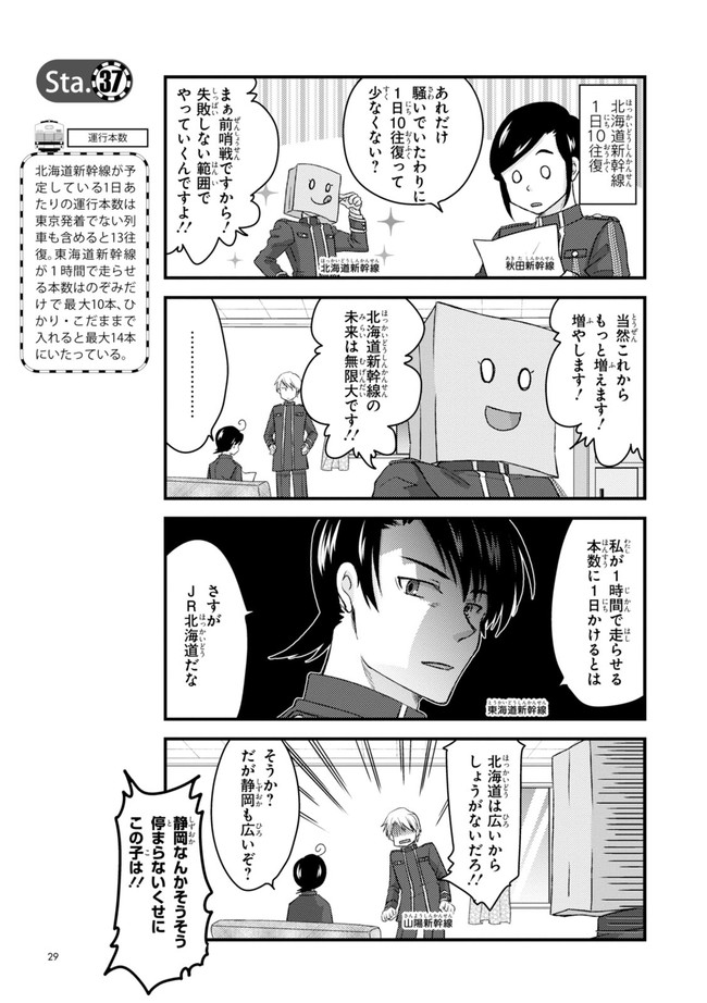 日本全国に繋がる鉄道網…そんな鉄道路線たちを擬人化した鉄道トリビアコメディ!日本一の収益を誇る東海道新幹線はものすごく金に細かかったり、超かっこいい新幹線500系を誇る山陽新幹線はイケメンなのに個性の強い路線(東海道新幹線&九州新幹線)に挟まれて不憫だったり……と、読めば妙に納得するユニークで愛すべき擬人化路線たち!首都圏中心に新潟、東北方面などの路線も含め、登場路線数は90路線以上!あなたの街の鉄道も擬人化されているかもしれませんよ?