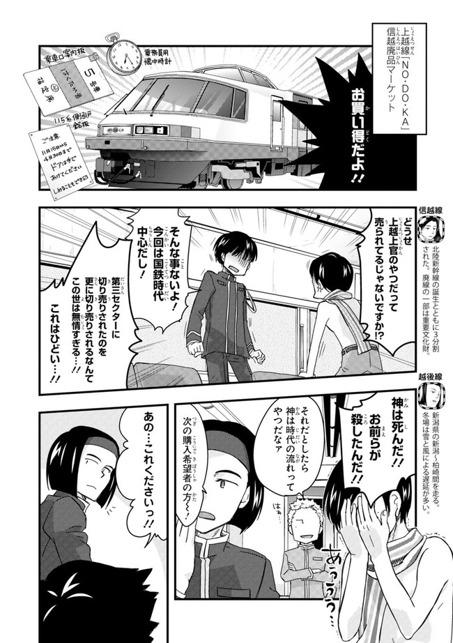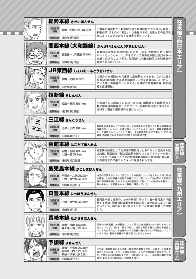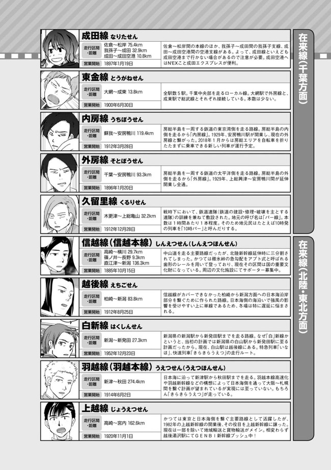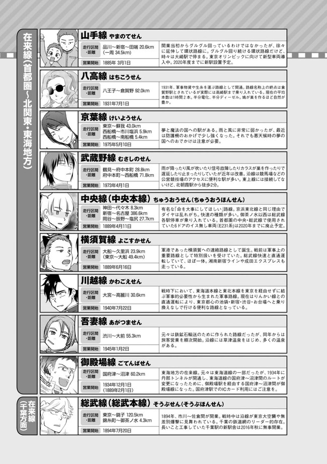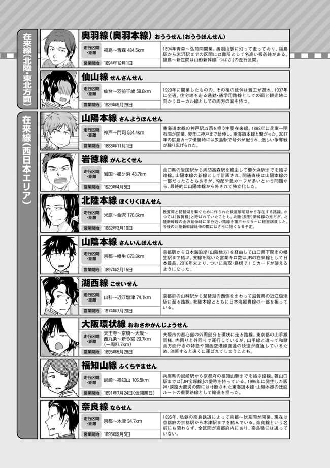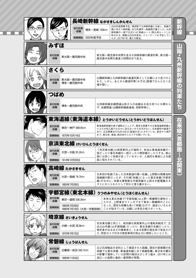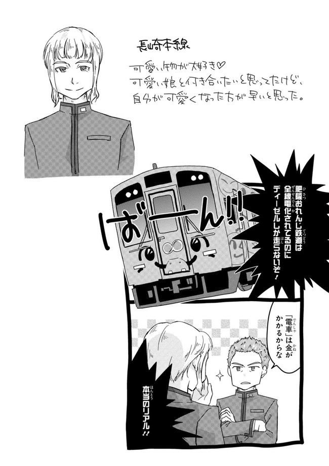 日本全国に繋がる鉄道網…そんな鉄道路線たちを擬人化した鉄道トリビアコメディ!日本一の収益を誇る東海道新幹線はものすごく金に細かかったり、超かっこいい新幹線500系を誇る山陽新幹線はイケメンなのに個性の強い路線(東海道新幹線&九州新幹線)に挟まれて不憫だったり……と、読めば妙に納得するユニークで愛すべき擬人化路線たち!首都圏中心に新潟、東北方面などの路線も含め、登場路線数は90路線以上!あなたの街の鉄道も擬人化されているかもしれませんよ?
