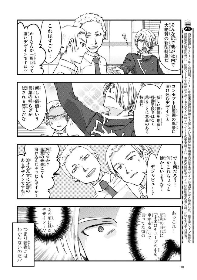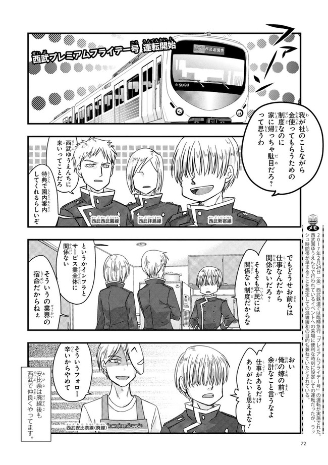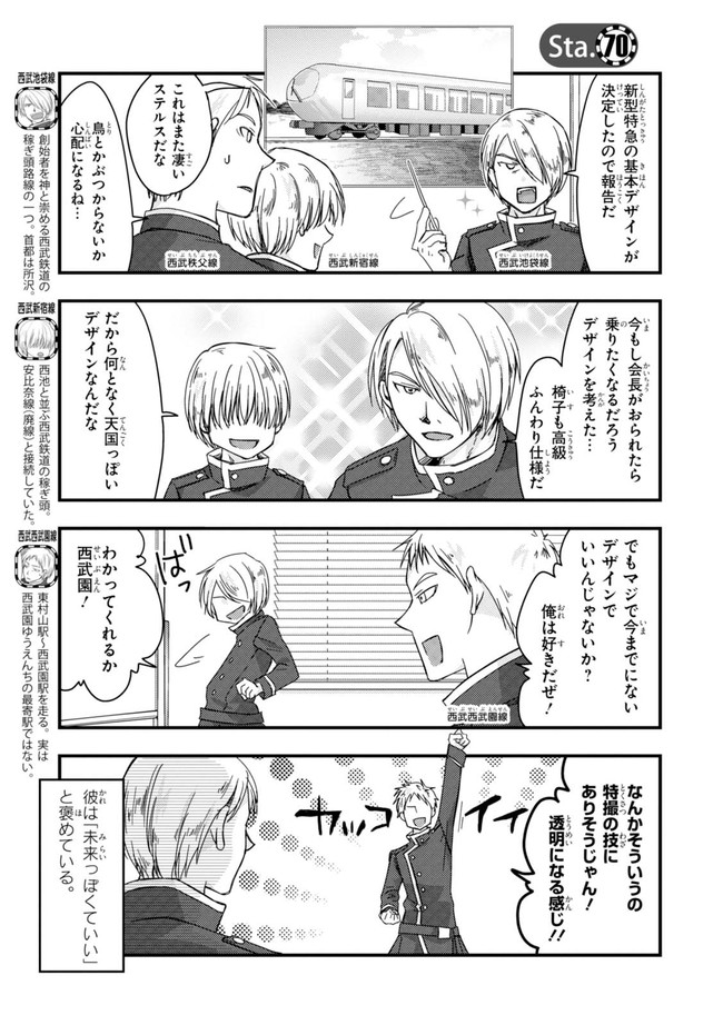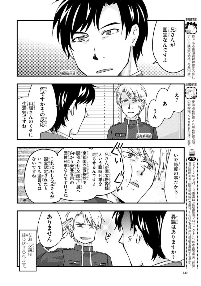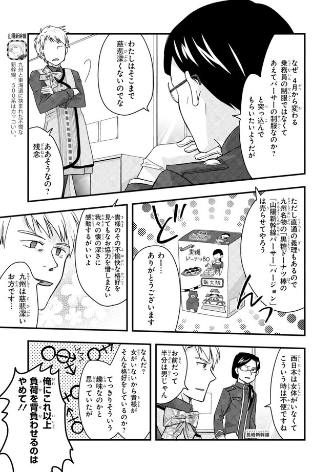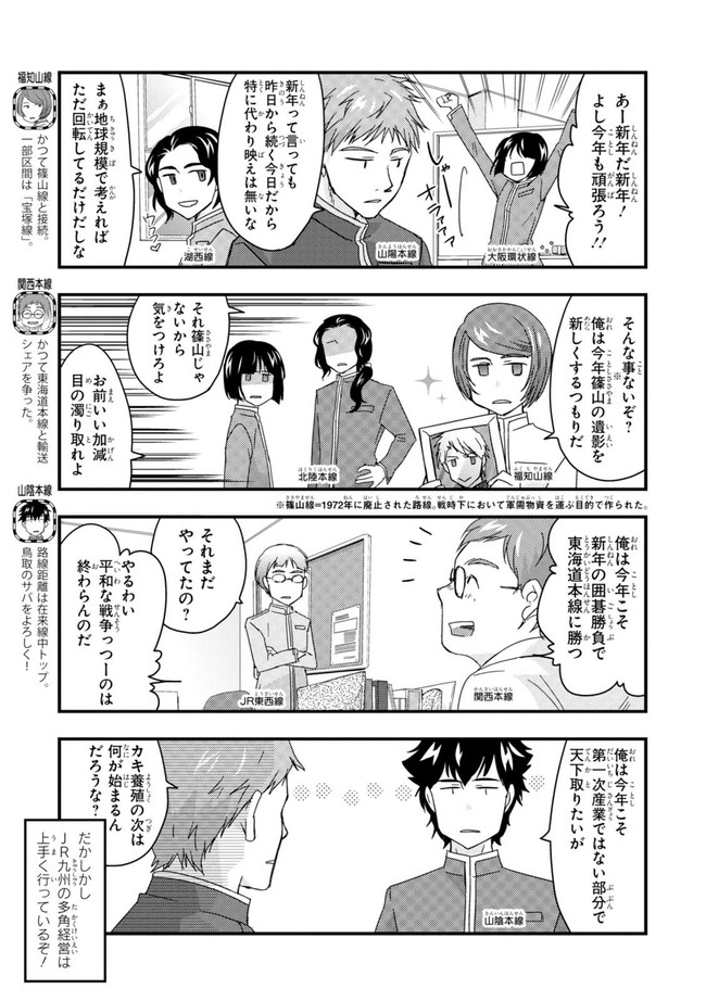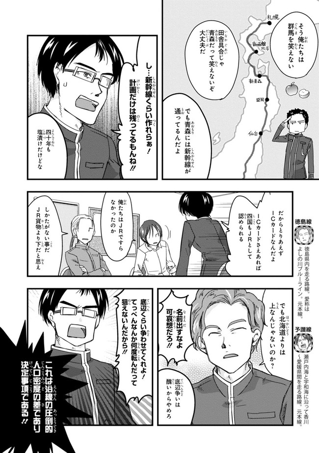 日本全国に繋がる鉄道網…そんな鉄道路線たちを擬人化した鉄道トリビアコメディ!日本一の収益を誇る東海道新幹線はものすごく金に細かかったり、超かっこいい新幹線500系を誇る山陽新幹線はイケメンなのに個性の強い路線(東海道新幹線&九州新幹線)に挟まれて不憫だったり……と、読めば妙に納得するユニークで愛すべき擬人化路線たち!首都圏中心に新潟、東北方面などの路線も含め、登場路線数は90路線以上!あなたの街の鉄道も擬人化されているかもしれませんよ?