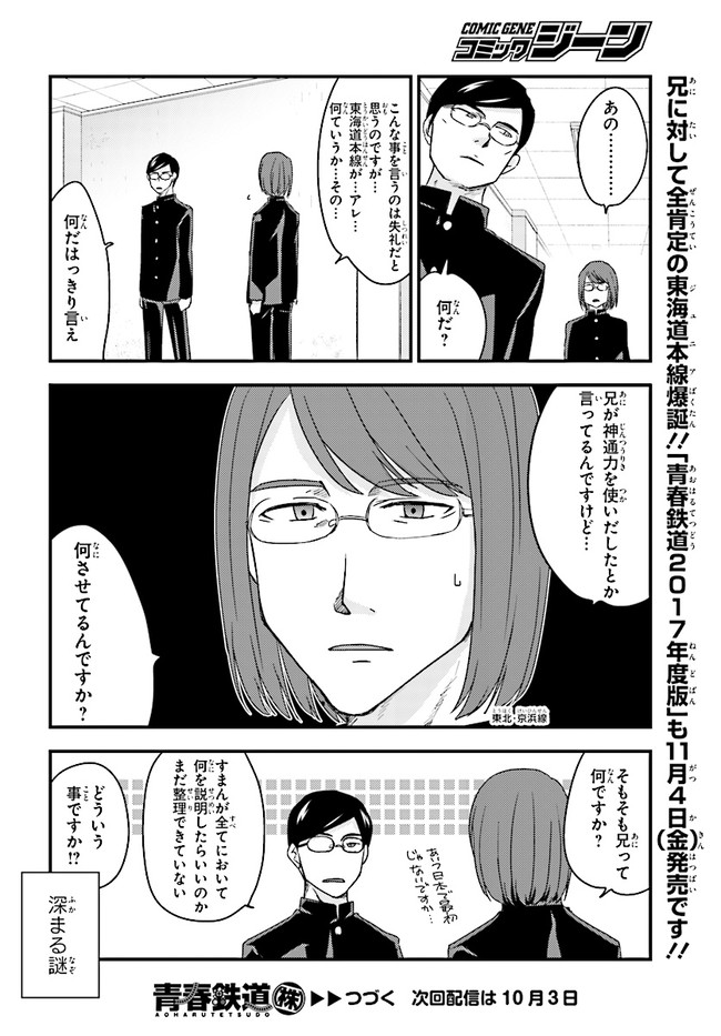 日本全国に繋がる鉄道網…そんな鉄道路線たちを擬人化した鉄道トリビアコメディ!日本一の収益を誇る東海道新幹線はものすごく金に細かかったり、超かっこいい新幹線500系を誇る山陽新幹線はイケメンなのに個性の強い路線(東海道新幹線&九州新幹線)に挟まれて不憫だったり……と、読めば妙に納得するユニークで愛すべき擬人化路線たち!首都圏中心に新潟、東北方面などの路線も含め、登場路線数は90路線以上!あなたの街の鉄道も擬人化されているかもしれませんよ? コミックス好評発売中!! 【収録話数】 『青春鉄道2021年度版』Sta.117~136 『青春鉄道2020年度版』Sta.96〜116/鉄ミュスピンオフ稽古場レポート 『青春鉄道2019年度版』Sta75~95/鉄ミュ3稽古場レポート/2018年あけましておめでとう号 『青春鉄道2018年度版』Sta-53~Sta-74/鉄ミュ2稽古場レポート 『青春鉄道2017年度版』Sta-34~Sta-52、黎明編番外編 『青春鉄道2016年度版』Sta-15〜Sta-33、鉄ミュ稽古場レポート 『青春鉄道2015年度版』Sta-1〜Sta-14