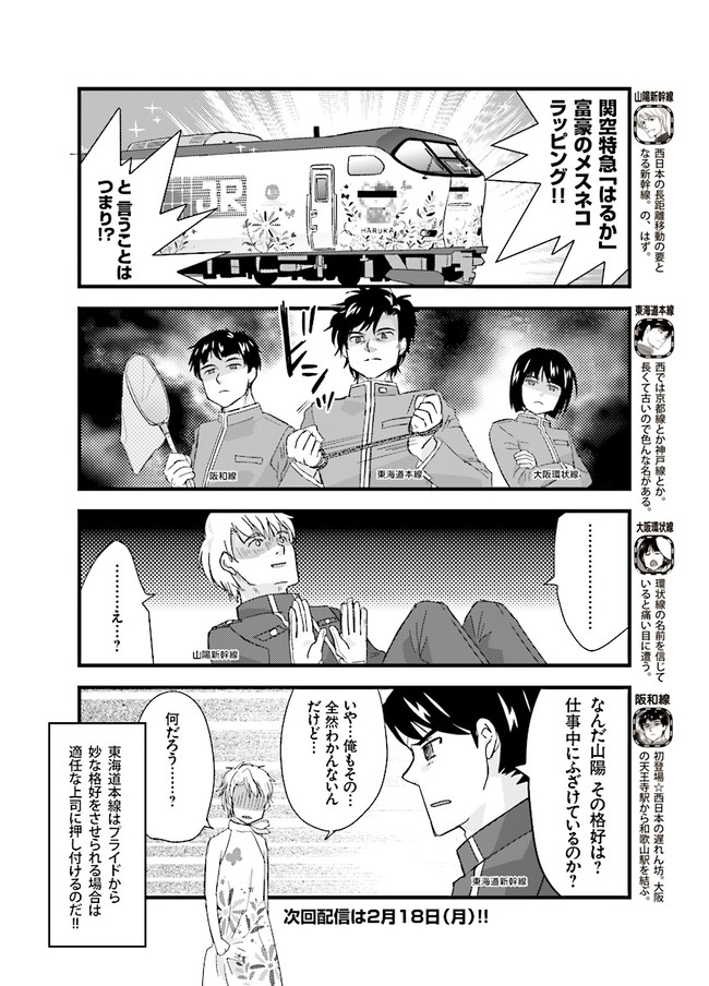 日本全国に繋がる鉄道網…そんな鉄道路線たちを擬人化した鉄道トリビアコメディ!日本一の収益を誇る東海道新幹線はものすごく金に細かかったり、超かっこいい新幹線500系を誇る山陽新幹線はイケメンなのに個性の強い路線(東海道新幹線&九州新幹線)に挟まれて不憫だったり……と、読めば妙に納得するユニークで愛すべき擬人化路線たち!首都圏中心に新潟、東北方面などの路線も含め、登場路線数は90路線以上!あなたの街の鉄道も擬人化されているかもしれませんよ?